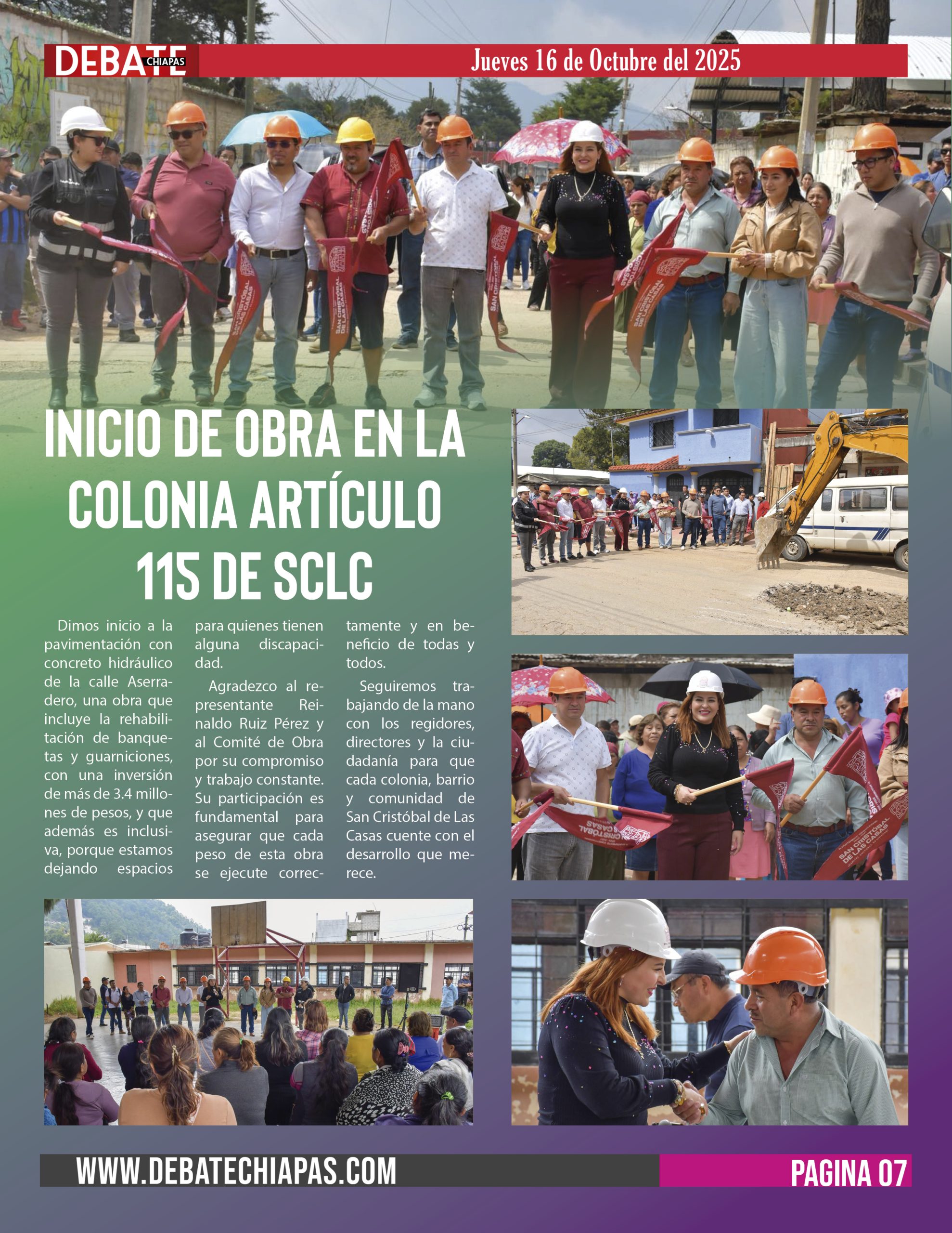 Agradezco al representante Reinaldo Ruiz Pérez y al Comité de Obra por su compromiso y trabajo constante. Su participación es fundamental para asegurar que cada peso de esta obra se ejecute correctamente y en beneficio de todas y todos.