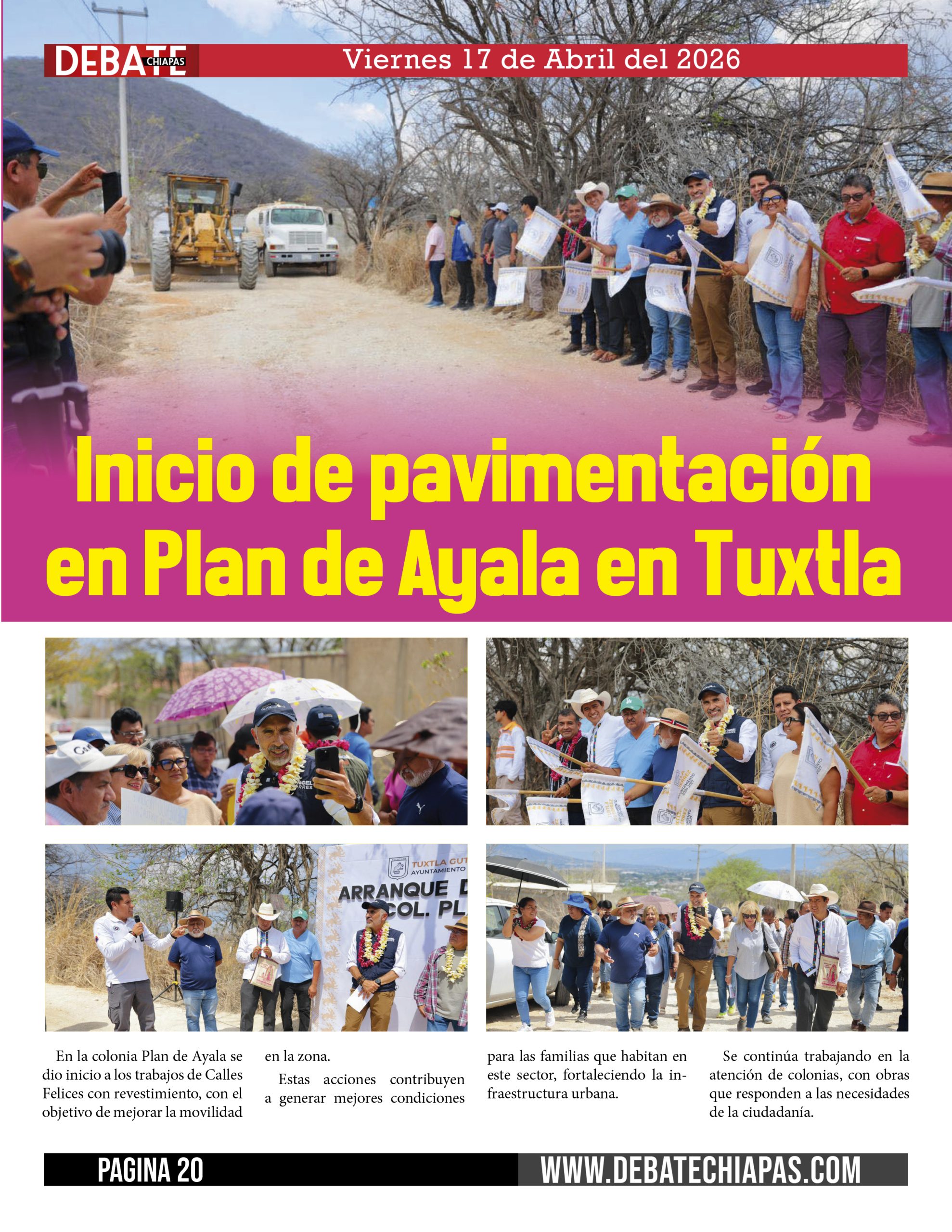 Inicio de pavimentación en Plan de Ayala en Tuxtla