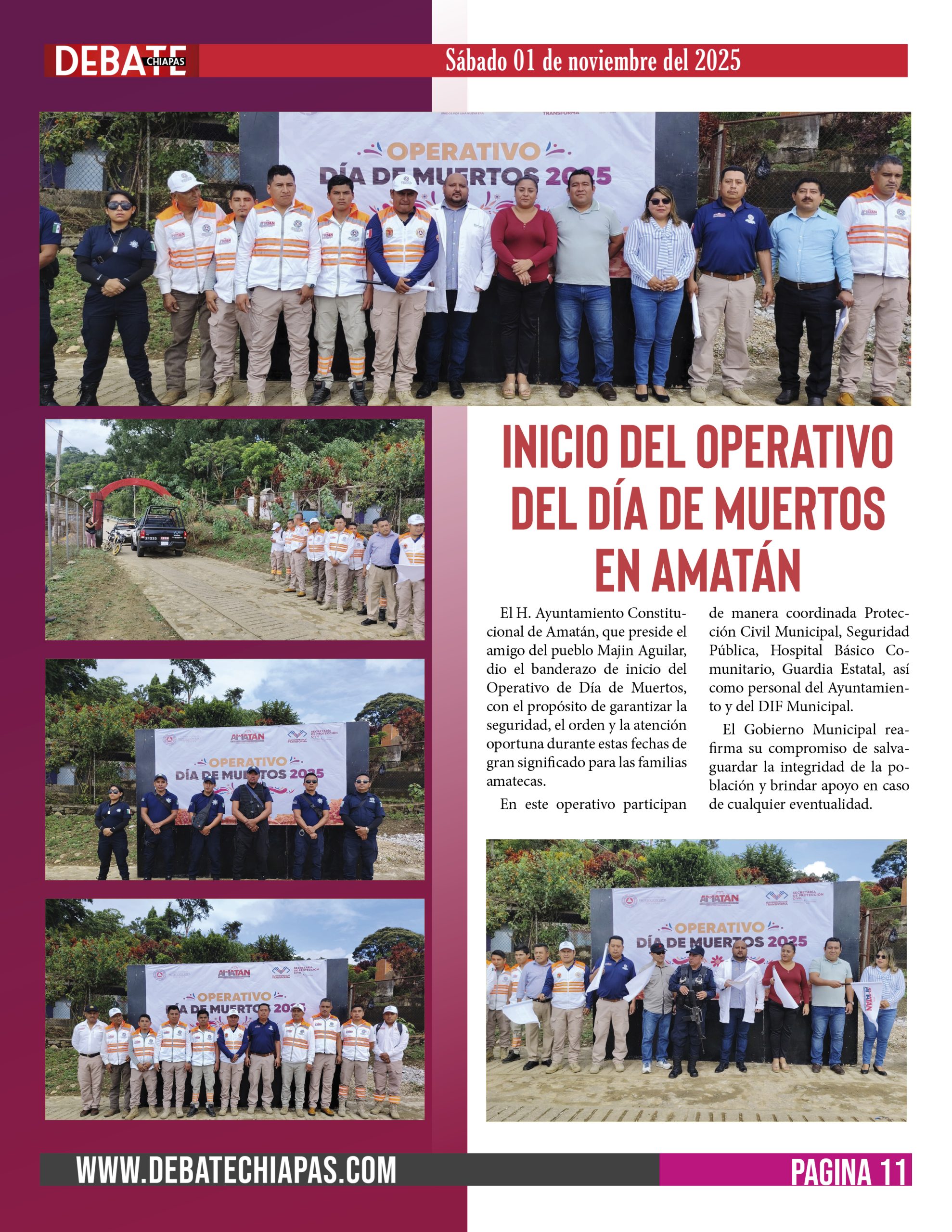 El H. Ayuntamiento Constitucional de Amatán, que preside el amigo del pueblo Majin Aguilar, dio el banderazo de inicio del Operativo de Día de Muertos, con el propósito de garantizar la seguridad, el orden y la atención oportuna durante estas fechas de gran significado para las familias amatecas.