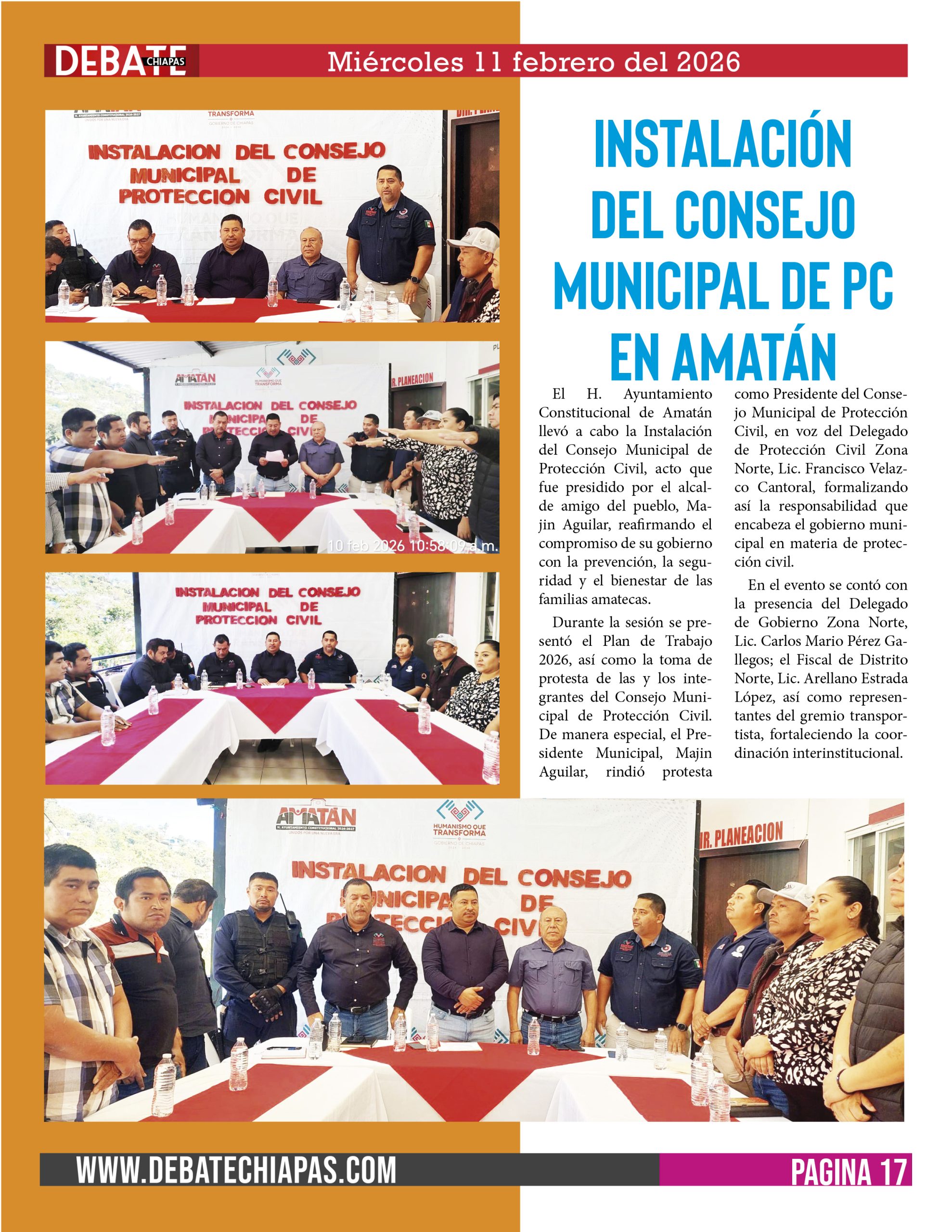 El H. Ayuntamiento Constitucional de Amatán llevó a cabo la Instalación del Consejo Municipal de Protección Civil, acto que fue presidido por el alcalde amigo del pueblo, Majin Aguilar, reafirmando el compromiso de su gobierno con la prevención, la seguridad y el bienestar de las familias amatecas.