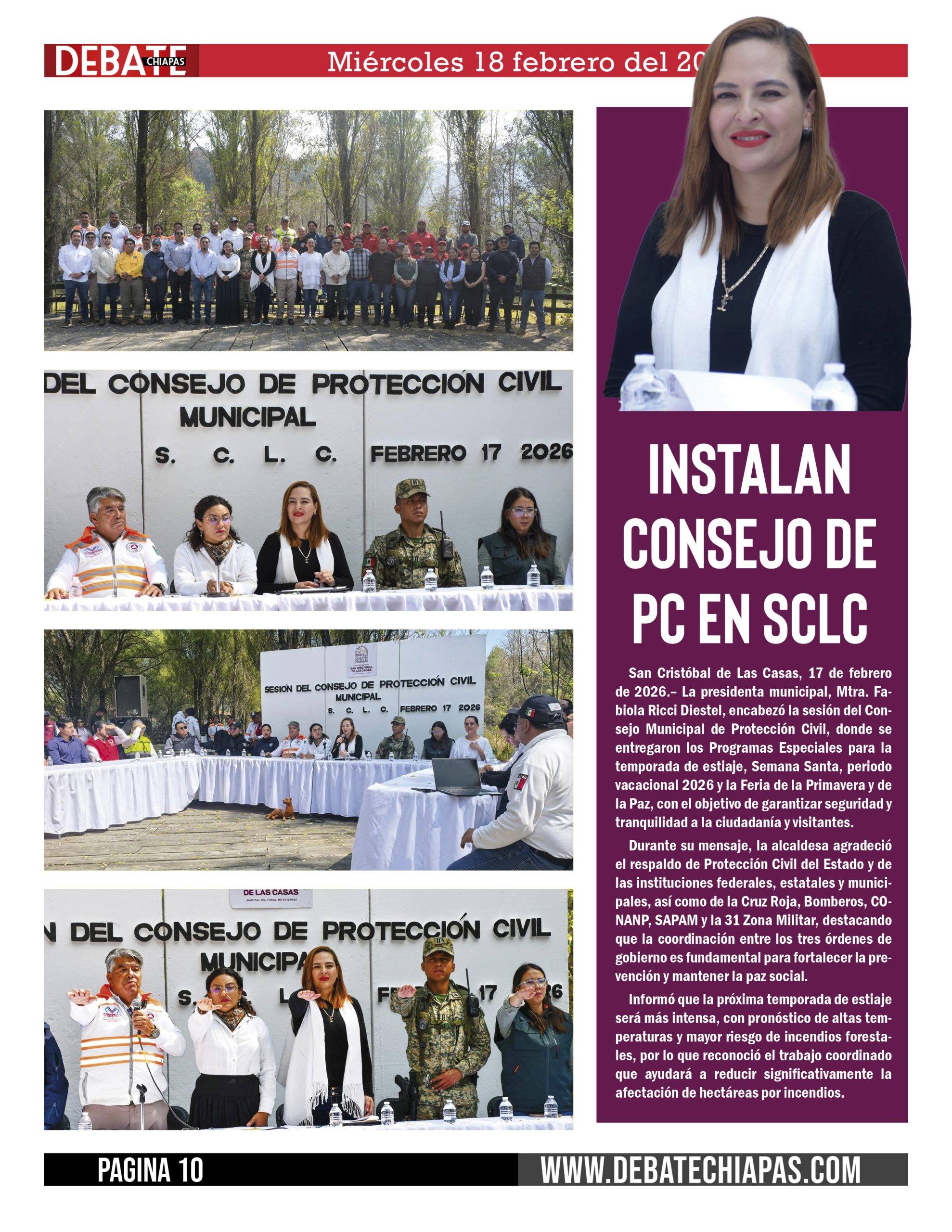 San Cristóbal de Las Casas, 17 de febrero de 2026.– La presidenta municipal, Mtra. Fabiola Ricci Diestel, encabezó la sesión del Consejo Municipal de Protección Civil, donde se entregaron los Programas Especiales para la temporada de estiaje, Semana Santa, periodo vacacional 2026 y la Feria de la Primavera y de la Paz, con el objetivo de garantizar seguridad y tranquilidad a la ciudadanía y visitantes.