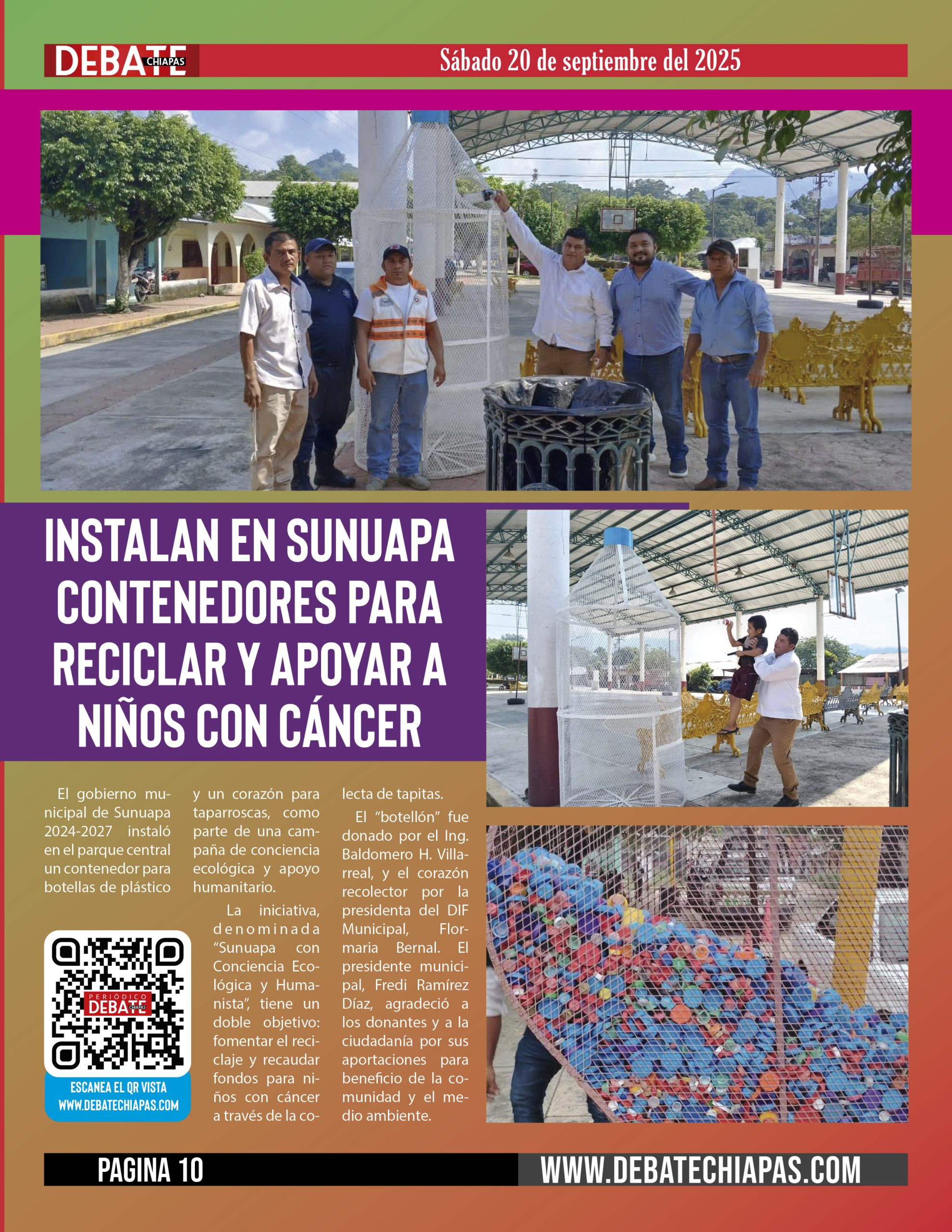 Instalan en Sunuapa contenedores para reciclar y apoyar a niños con cáncer