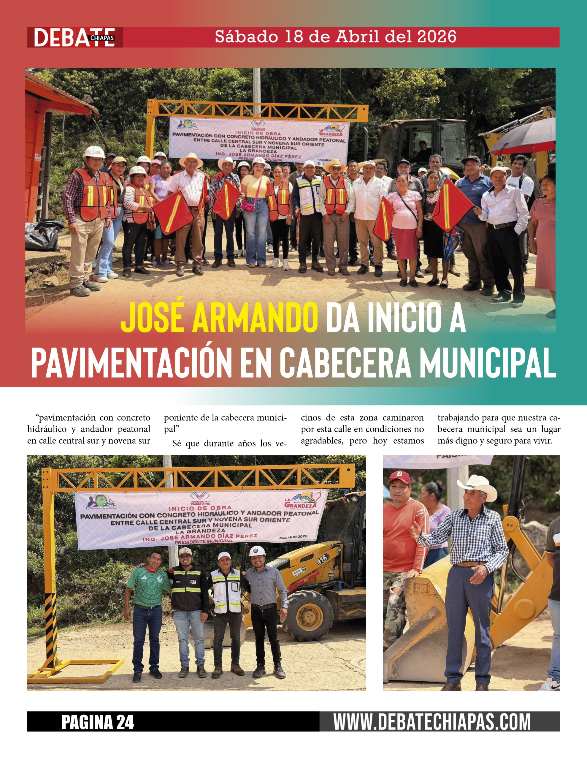 José Armando da inicio a pavimentación en cabecera municipal