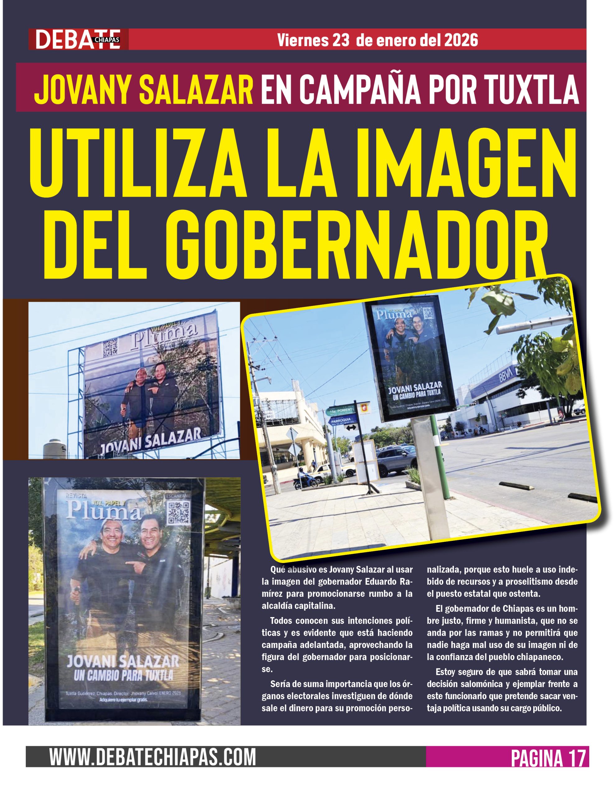Sería de suma importancia que los órganos electorales investiguen de dónde sale el dinero para su promoción personalizada, porque esto huele a uso indebido de recursos y a proselitismo desde el puesto estatal que ostenta.