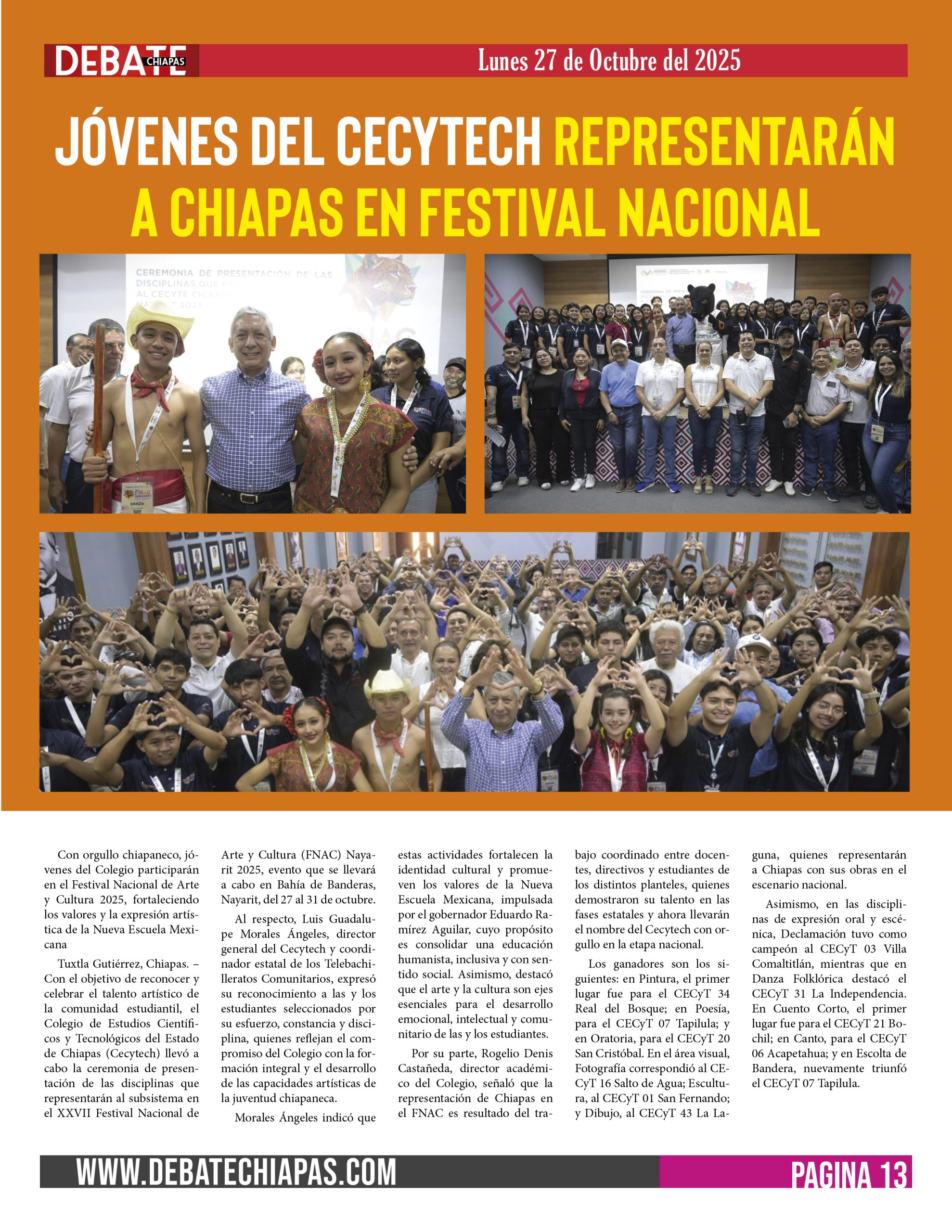 - Con orgullo chiapaneco, jóvenes del Colegio participarán en el Festival Nacional de Arte y Cultura 2025, fortaleciendo los valores y la expresión artística de la Nueva Escuela Mexicana