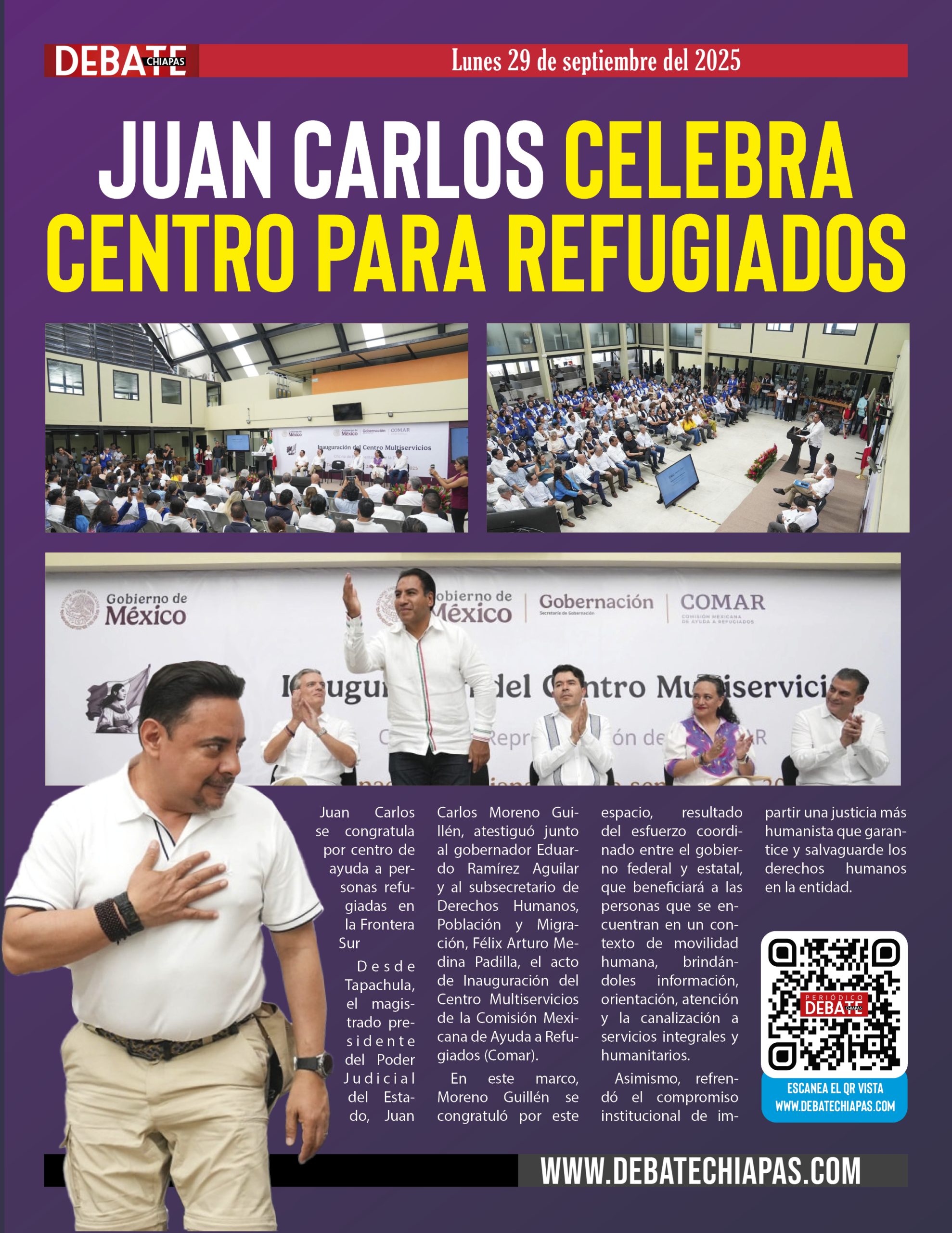Desde Tapachula, el magistrado presidente del Poder Judicial del Estado, Juan Carlos Moreno Guillén, atestiguó junto al gobernador Eduardo Ramírez Aguilar y al subsecretario de Derechos Humanos, Población y Migración, Félix Arturo Medina Padilla, el acto de Inauguración del Centro Multiservicios de la Comisión Mexicana de Ayuda a Refugiados (Comar).