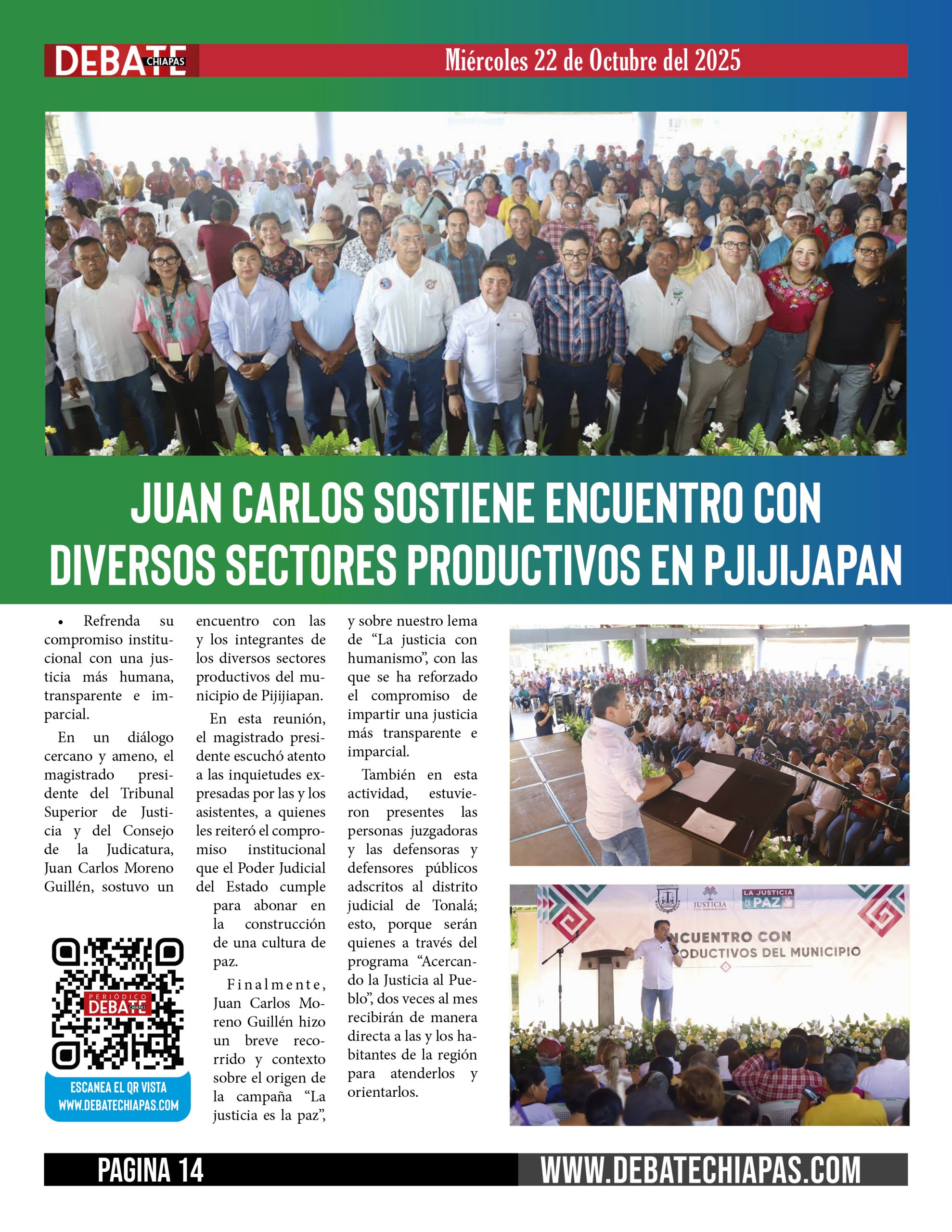 En un diálogo cercano y ameno, el magistrado presidente del Tribunal Superior de Justicia y del Consejo de la Judicatura, Juan Carlos Moreno Guillén, sostuvo un encuentro con las y los integrantes de los diversos sectores productivos del municipio de Pijijiapan.