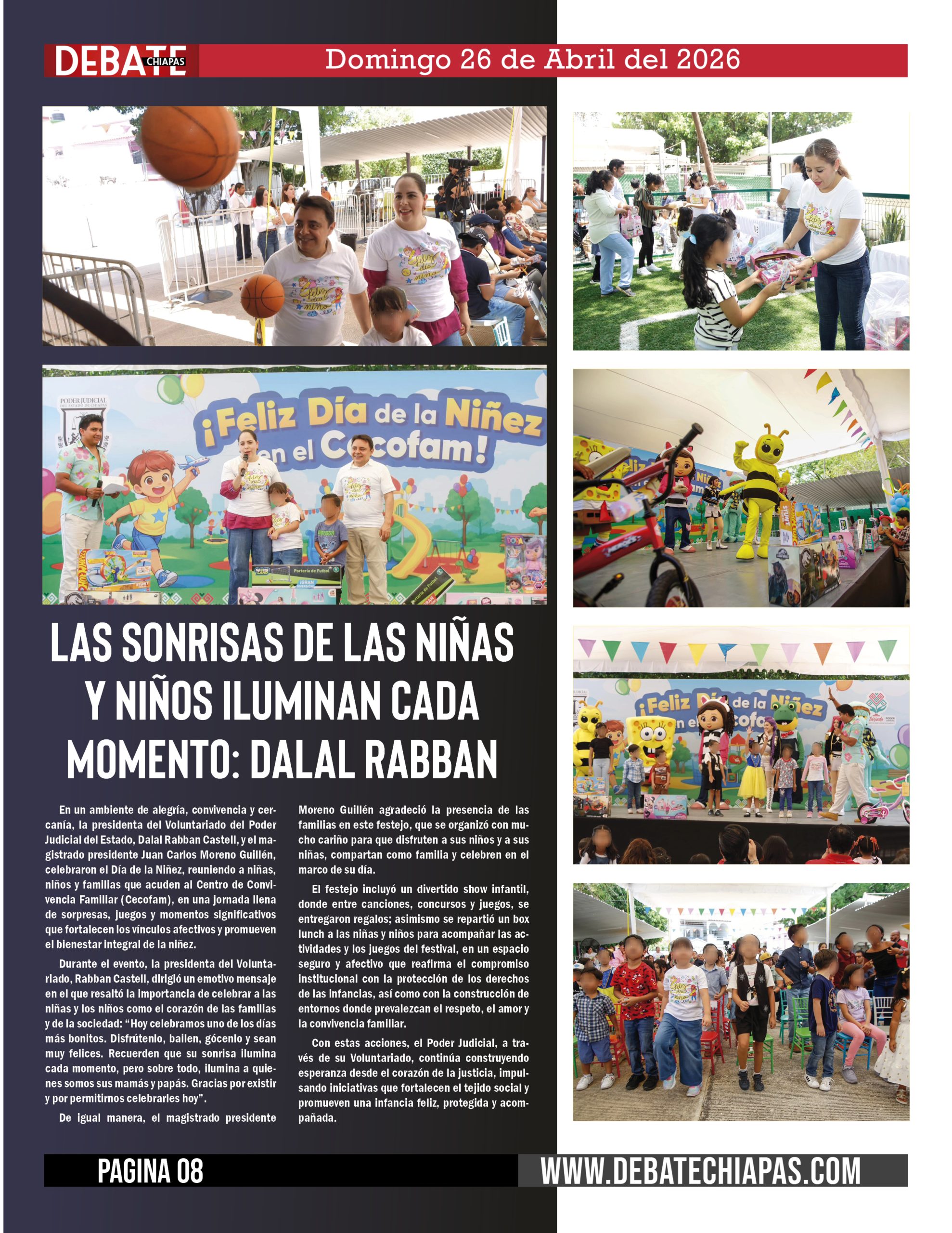 En un ambiente de alegría, convivencia y cercanía, la presidenta del Voluntariado del Poder Judicial del Estado, Dalal Rabban Castell, y el magistrado presidente Juan Carlos Moreno Guillén, celebraron el Día de la Niñez, reuniendo a niñas, niños y familias que acuden al Centro de Convivencia Familiar (Cecofam), en una jornada llena de sorpresas, juegos y momentos significativos que fortalecen los vínculos afectivos y promueven el bienestar integral de la niñez.