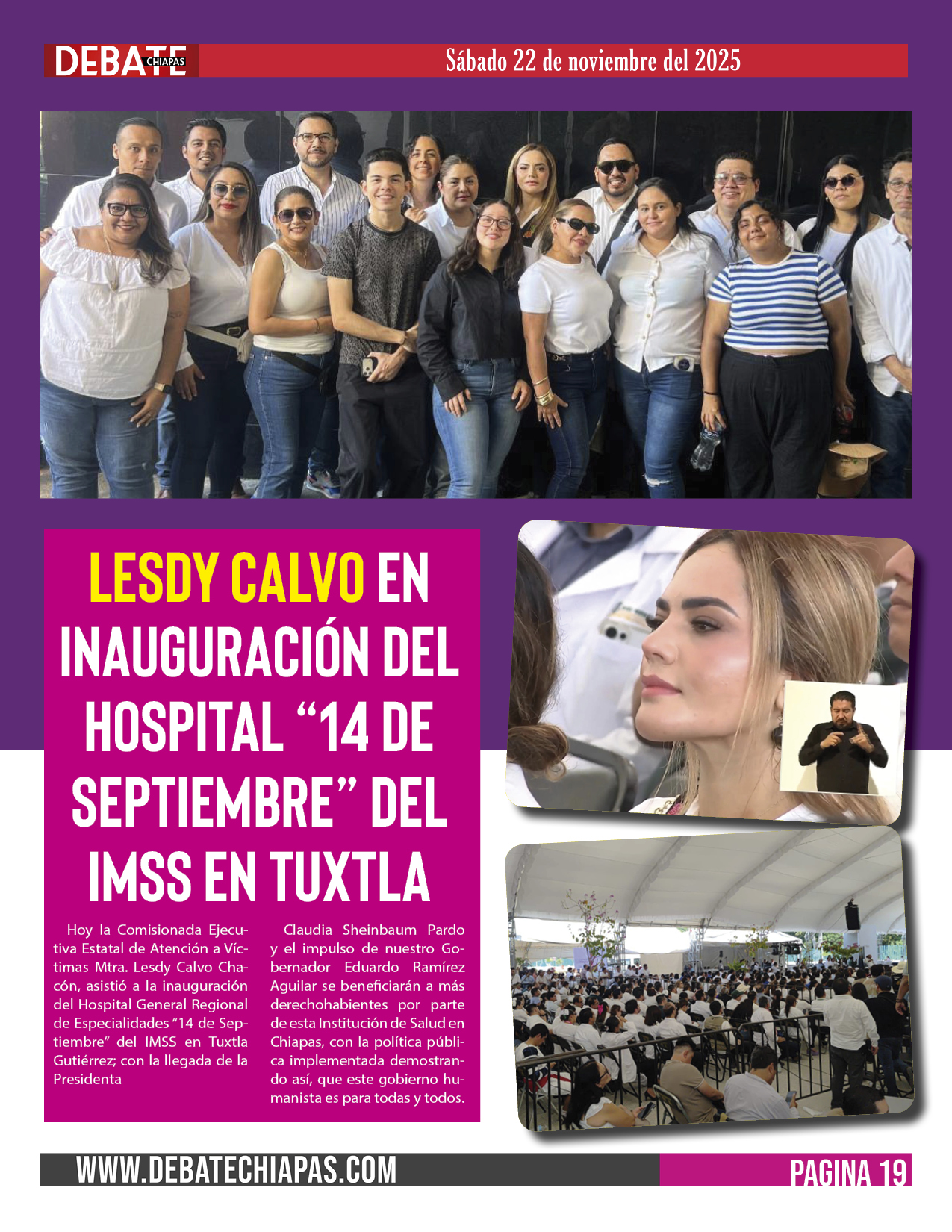 Lesdy Calvo en inauguración del Hospital “14 de Septiembre” del IMSS en Tuxtla