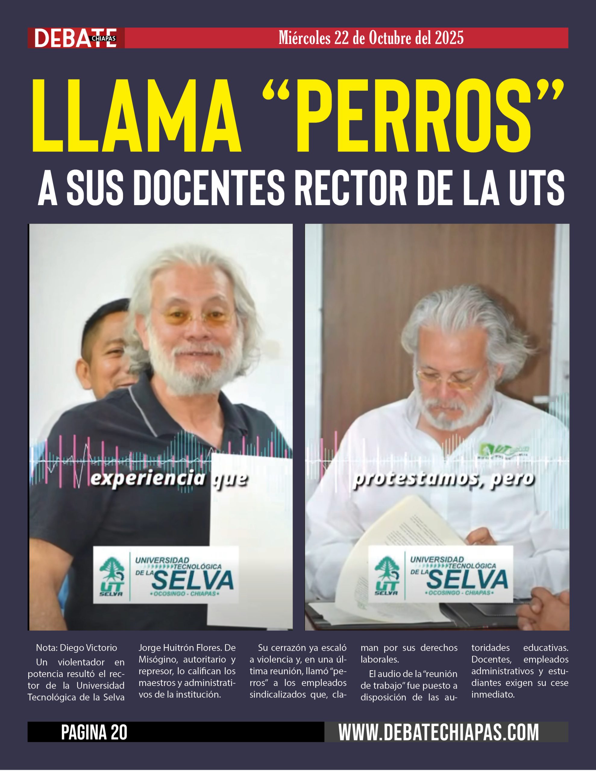 Un violentador en potencia resultó el rector de la Universidad Tecnológica de la Selva Jorge Huitrón Flores. De Misógino, autoritario y represor, lo califican los maestros y administrativos de la institución.