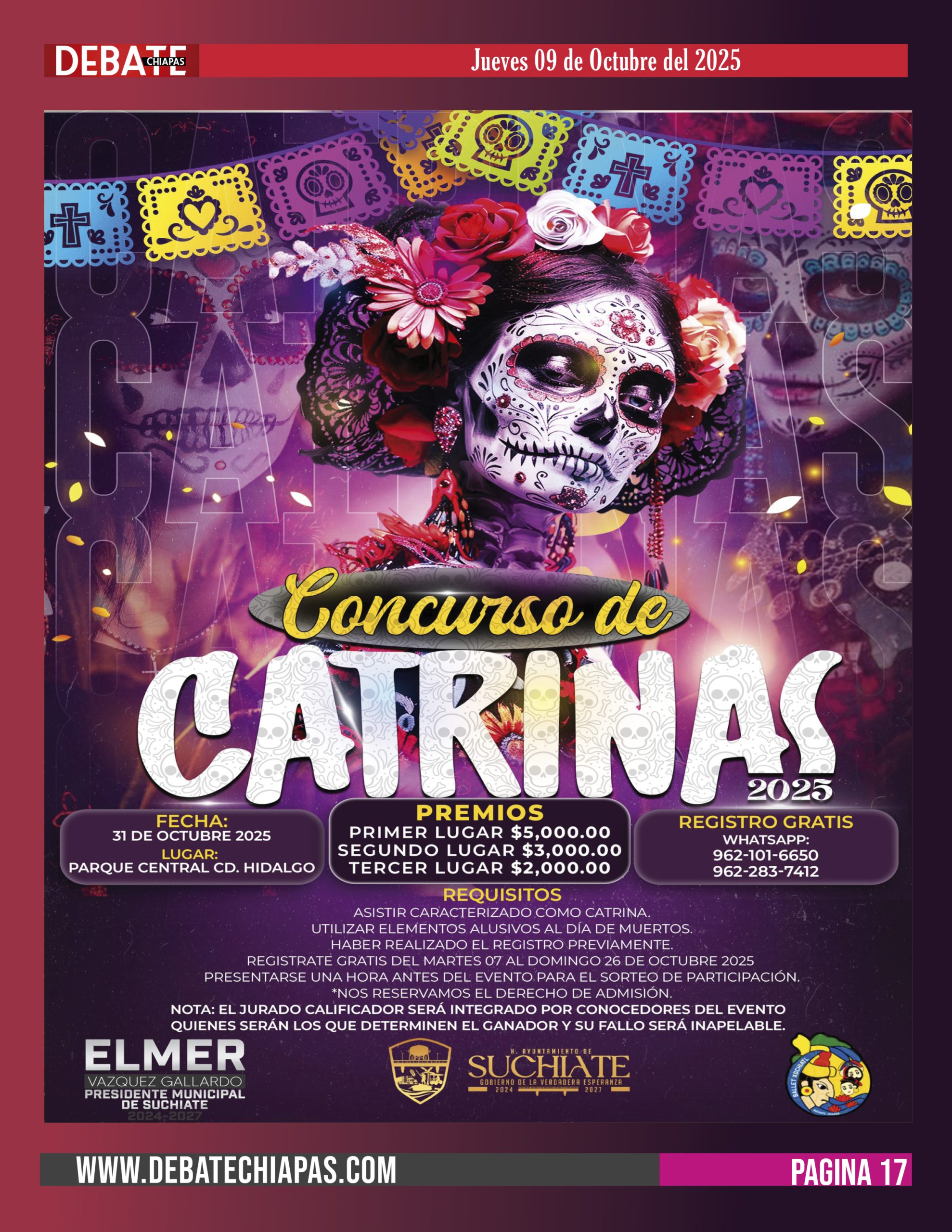 El Ayuntamiento de Suchiate, que encabeza nuestro presidente municipal Elmer Vázquez Gallardo, te invita a participar en una de las tradiciones más representativas de nuestro país: el Concurso de Catrinas 2025.
