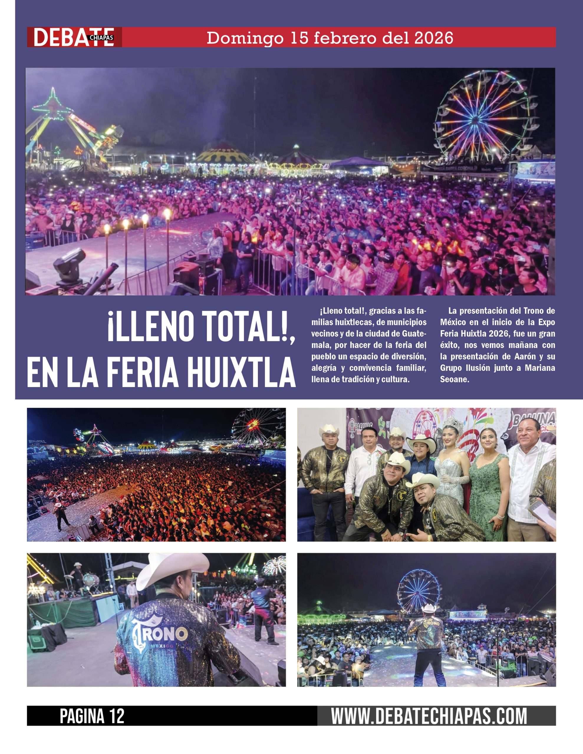 La presentación del Trono de México en el inicio de la Expo Feria Huixtla 2026, fue un gran éxito, nos vemos mañana con la presentación de Aarón y su Grupo Ilusión junto a Mariana Seoane.
