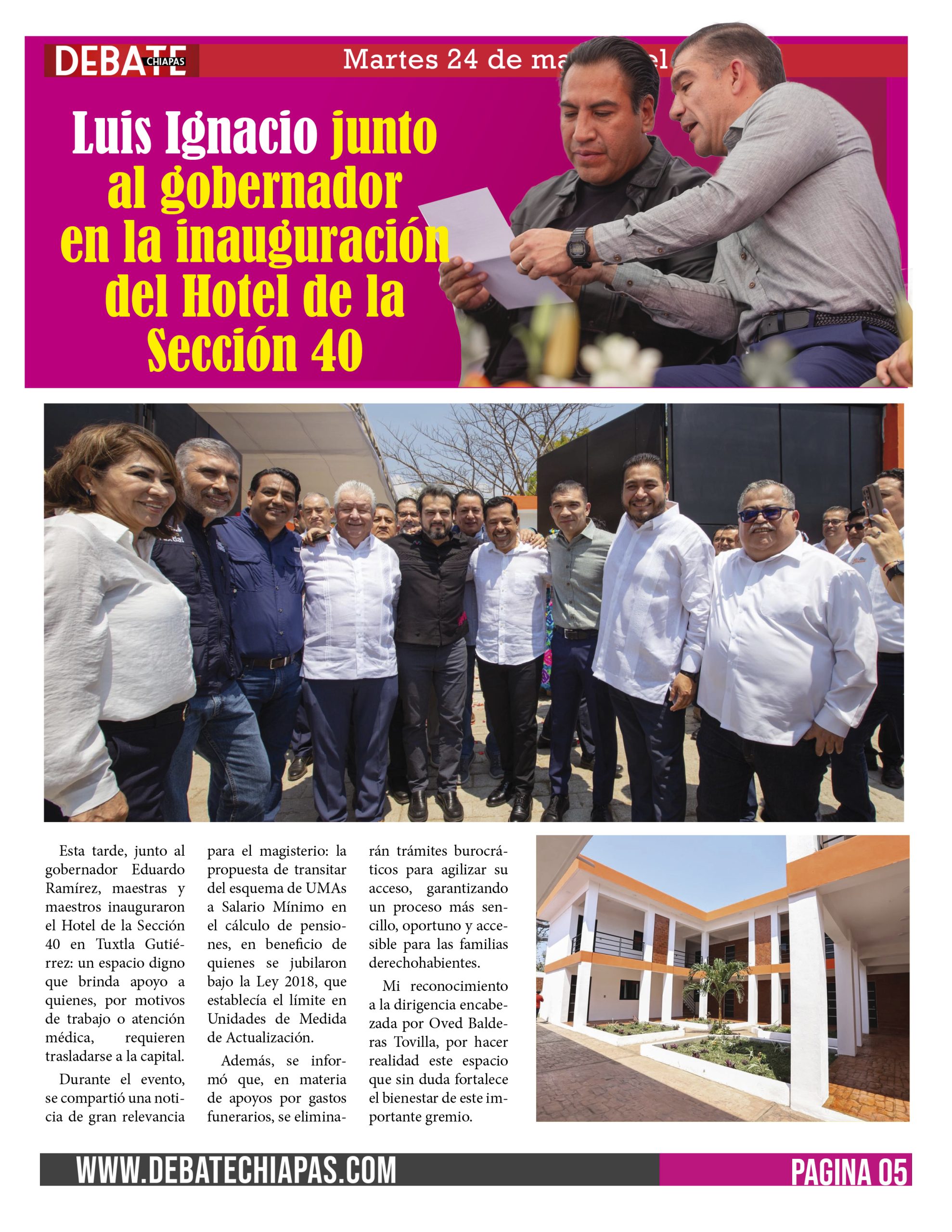 Esta tarde, junto al gobernador Eduardo Ramírez, maestras y maestros inauguraron el Hotel de la Sección 40 en Tuxtla Gutiérrez: un espacio digno que brinda apoyo a quienes, por motivos de trabajo o atención médica, requieren trasladarse a la capital.