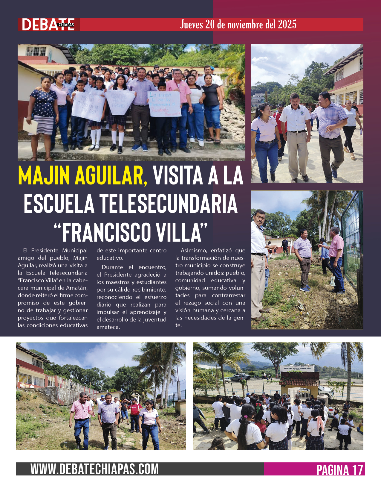 El Presidente Municipal amigo del pueblo, Majin Aguilar, realizó una visita a la Escuela Telesecundaria “Francisco Villa” en la cabecera municipal de Amatán, donde reiteró el firme compromiso de este gobierno de trabajar y gestionar proyectos que fortalezcan las condiciones educativas de este importante centro educativo.