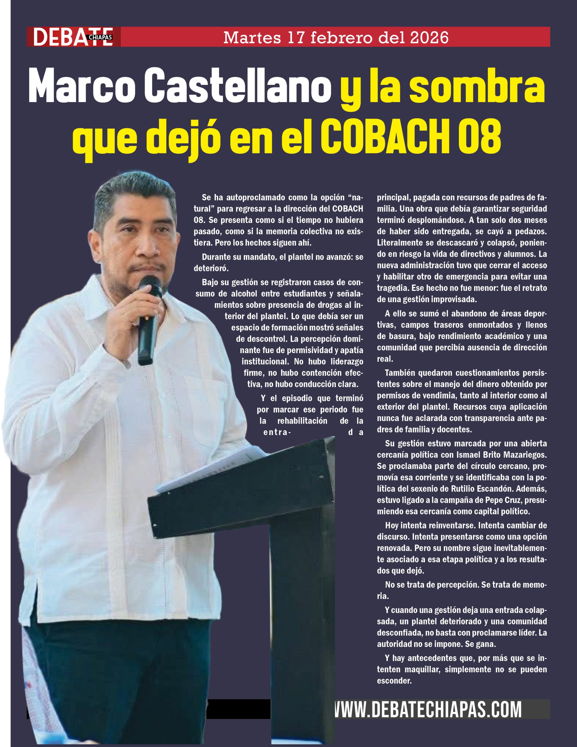 Marco Castellano y la sombra que dejó en el COBACH 08
