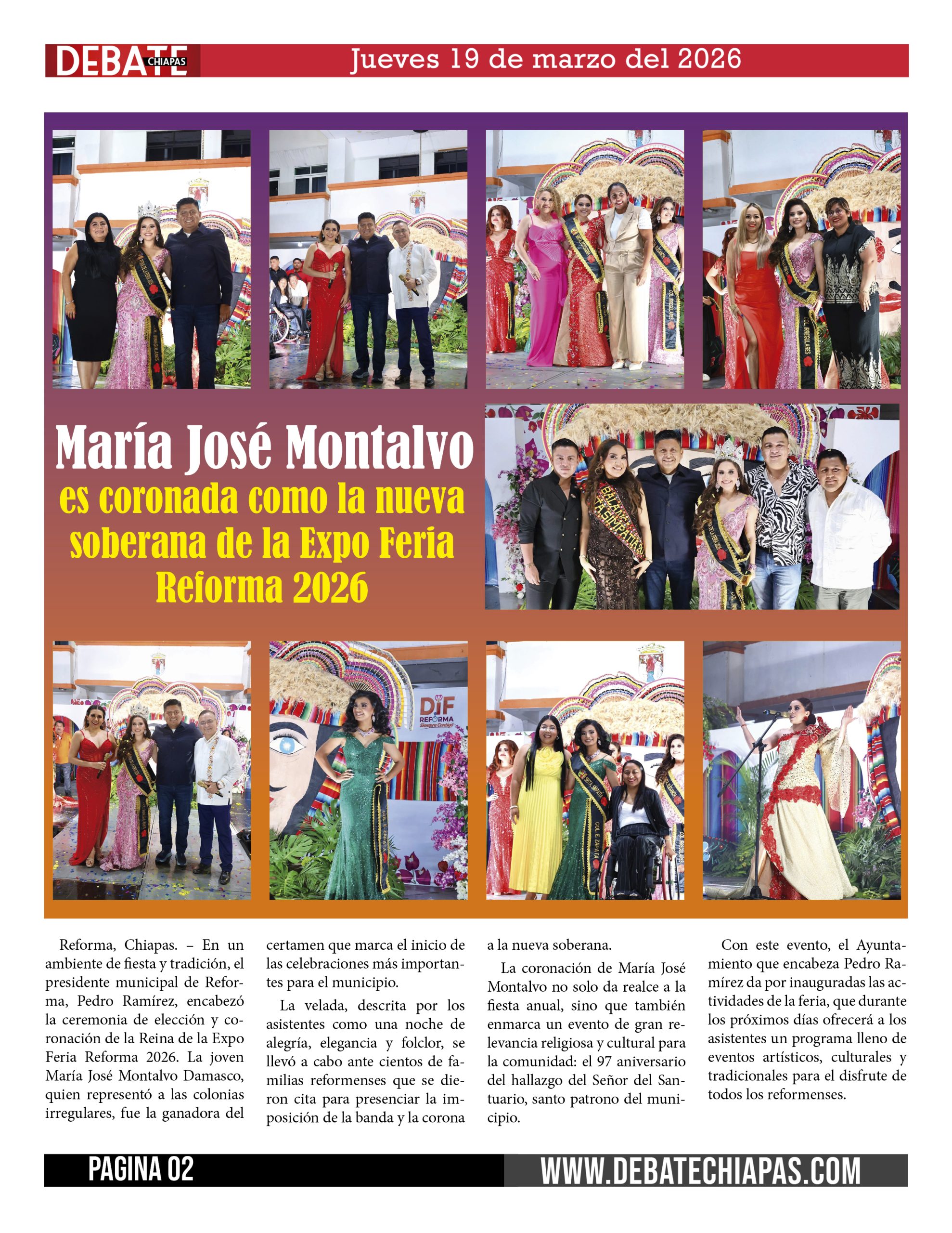 Reforma, Chiapas. – En un ambiente de fiesta y tradición, el presidente municipal de Reforma, Pedro Ramírez, encabezó la ceremonia de elección y coronación de la Reina de la Expo Feria Reforma 2026. La joven María José Montalvo Damasco, quien representó a las colonias irregulares, fue la ganadora del certamen que marca el inicio de las celebraciones más importantes para el municipio.