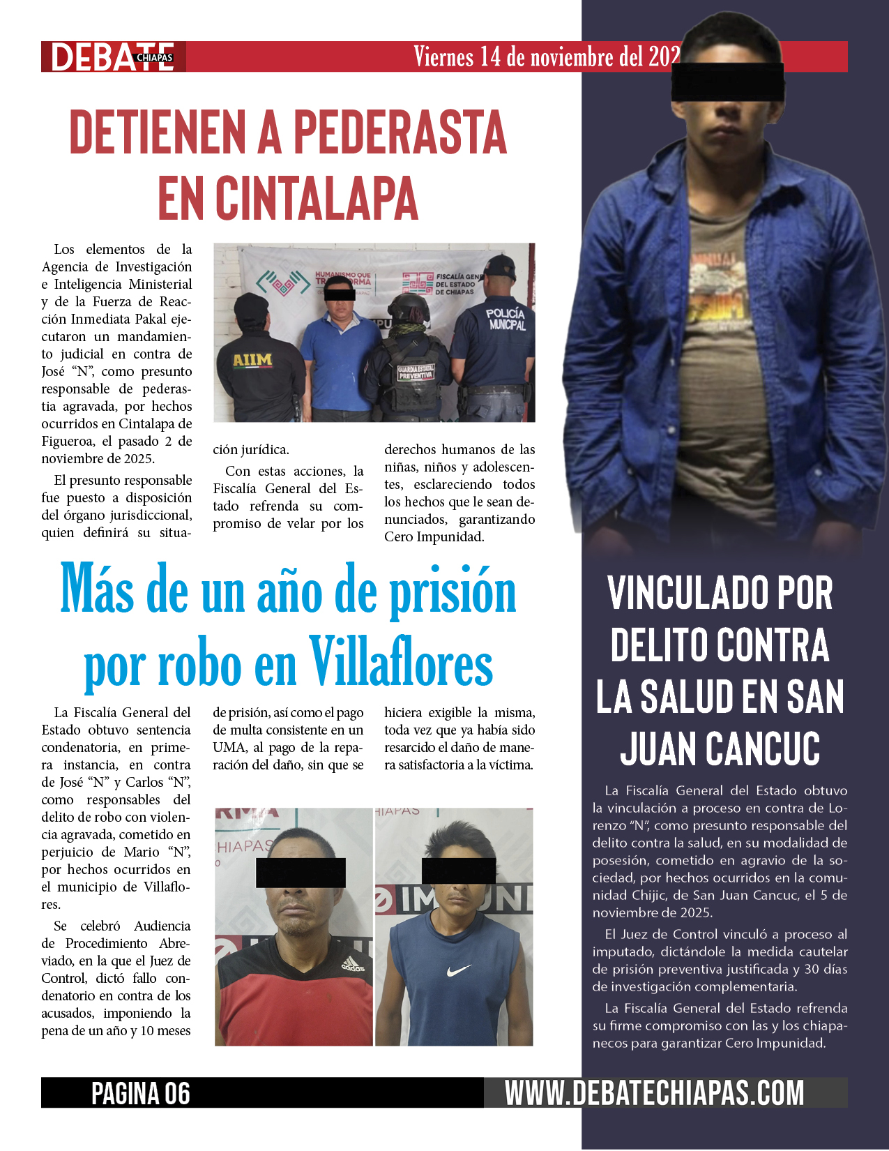 La Fiscalía General del Estado obtuvo sentencia condenatoria, en primera instancia, en contra de José “N” y Carlos “N”, como responsables del delito de robo con violencia agravada, cometido en perjuicio de Mario “N”, por hechos ocurridos en el municipio de Villaflores.