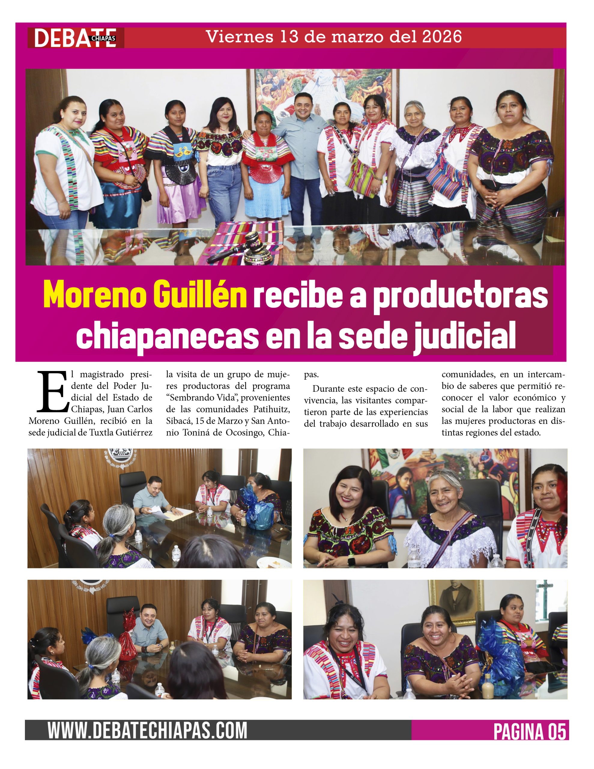 Moreno Guillén recibe a productoras chiapanecas en la sede judicial