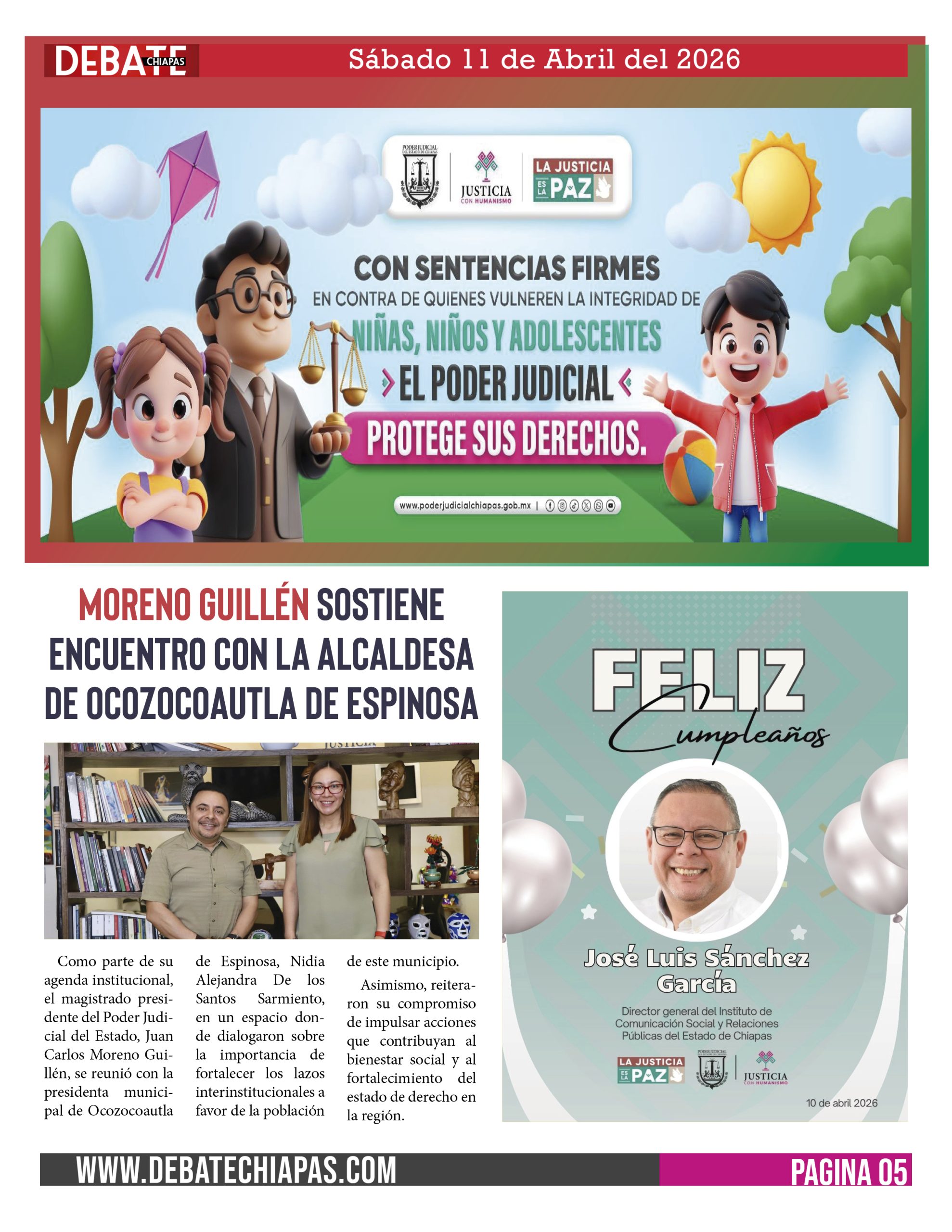 Como parte de su agenda institucional, el magistrado presidente del Poder Judicial del Estado, Juan Carlos Moreno Guillén, se reunió con la presidenta municipal de Ocozocoautla de Espinosa, Nidia Alejandra De los Santos Sarmiento, en un espacio donde dialogaron sobre la importancia de fortalecer los lazos interinstitucionales a favor de la población de este municipio.