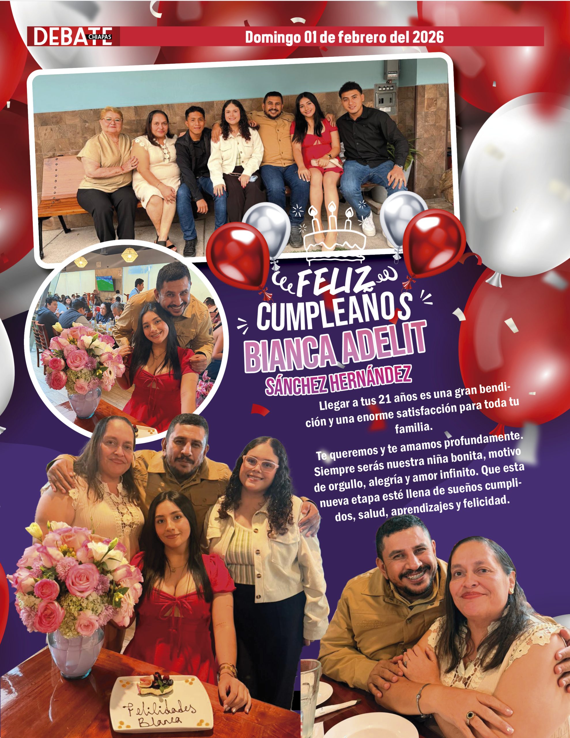Muchas felicidades, Bianca Adelit Sánchez Hernández, por cumplir un año más de vida.