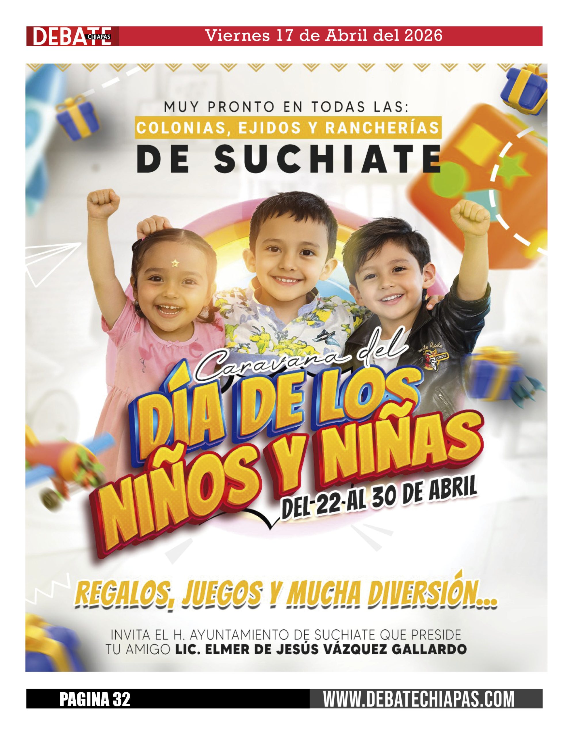 El H. Ayuntamiento de Suchiate que preside Lic. Elmer de Jesús Vázquez Gallardo, llevará a cabo la Caravana del Día de las Niñas y los Niños, recorriendo colonias, ejidos y rancherías del 22 al 30 de abril.
