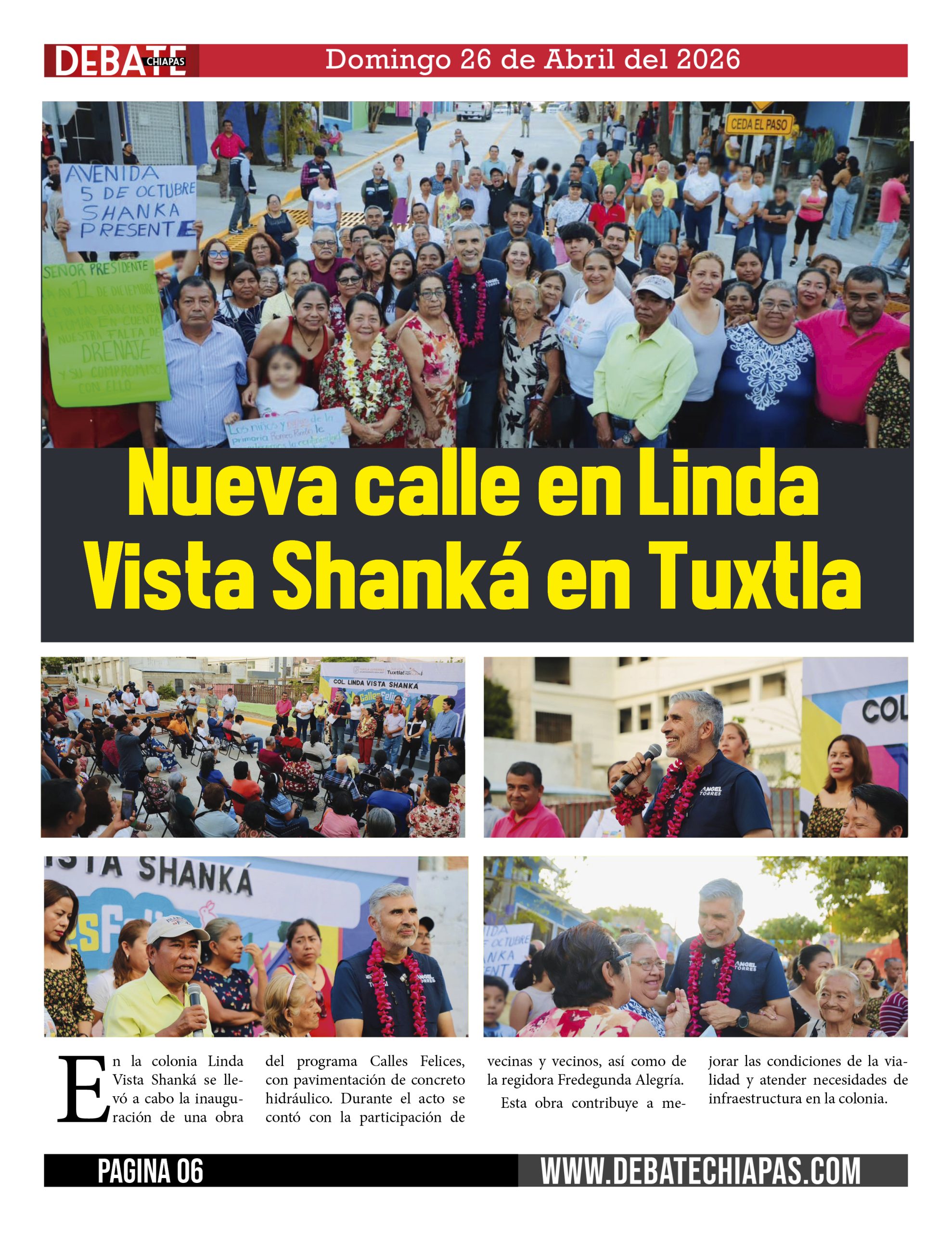 En la colonia Linda Vista Shanká se llevó a cabo la inauguración de una obra del programa Calles Felices, con pavimentación de concreto hidráulico. Durante el acto se contó con la participación de vecinas y vecinos, así como de la regidora Fredegunda Alegría.
