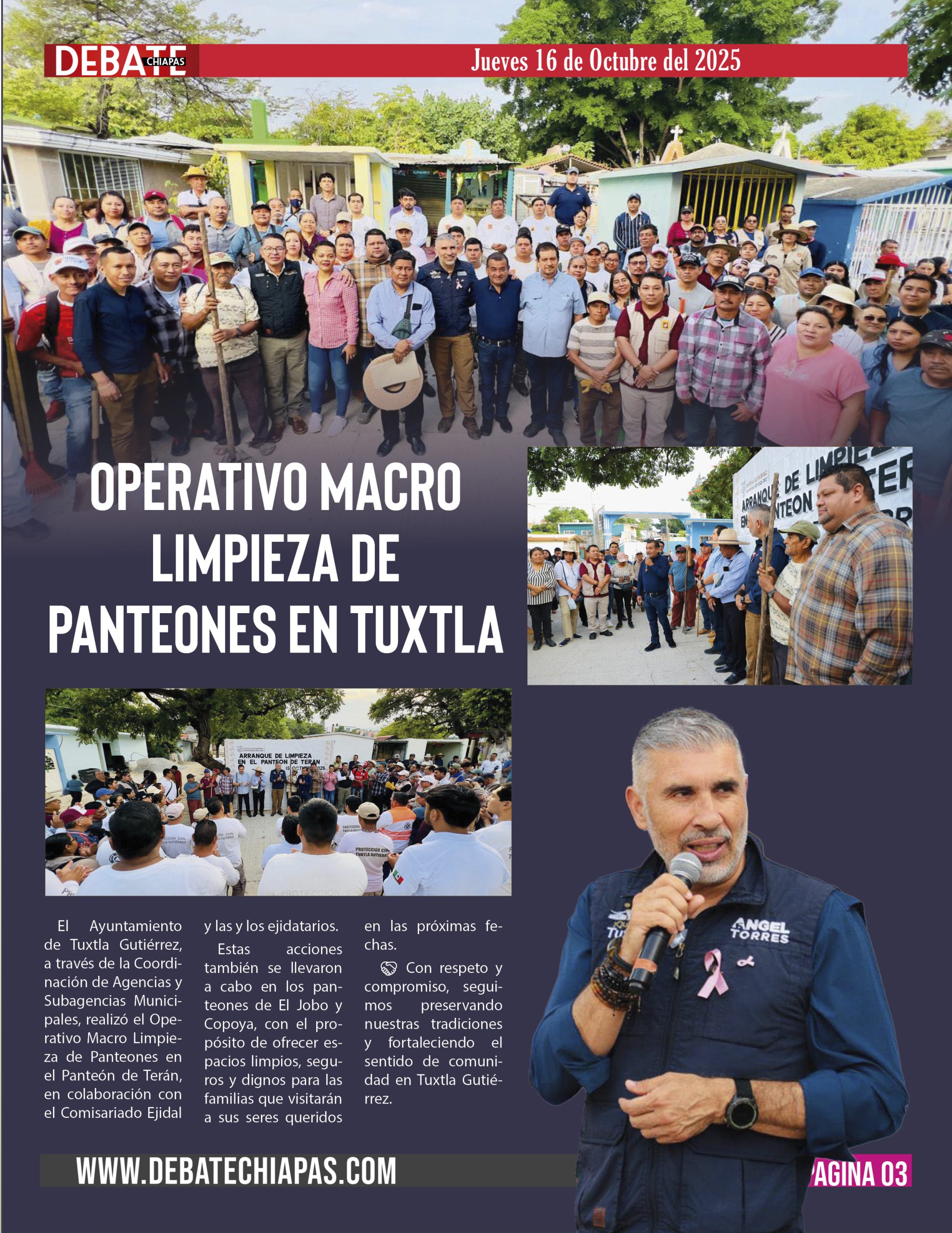 El Ayuntamiento de Tuxtla Gutiérrez, a través de la Coordinación de Agencias y Subagencias Municipales, realizó el Operativo Macro Limpieza de Panteones en el Panteón de Terán, en colaboración con el Comisariado Ejidal y las y los ejidatarios.