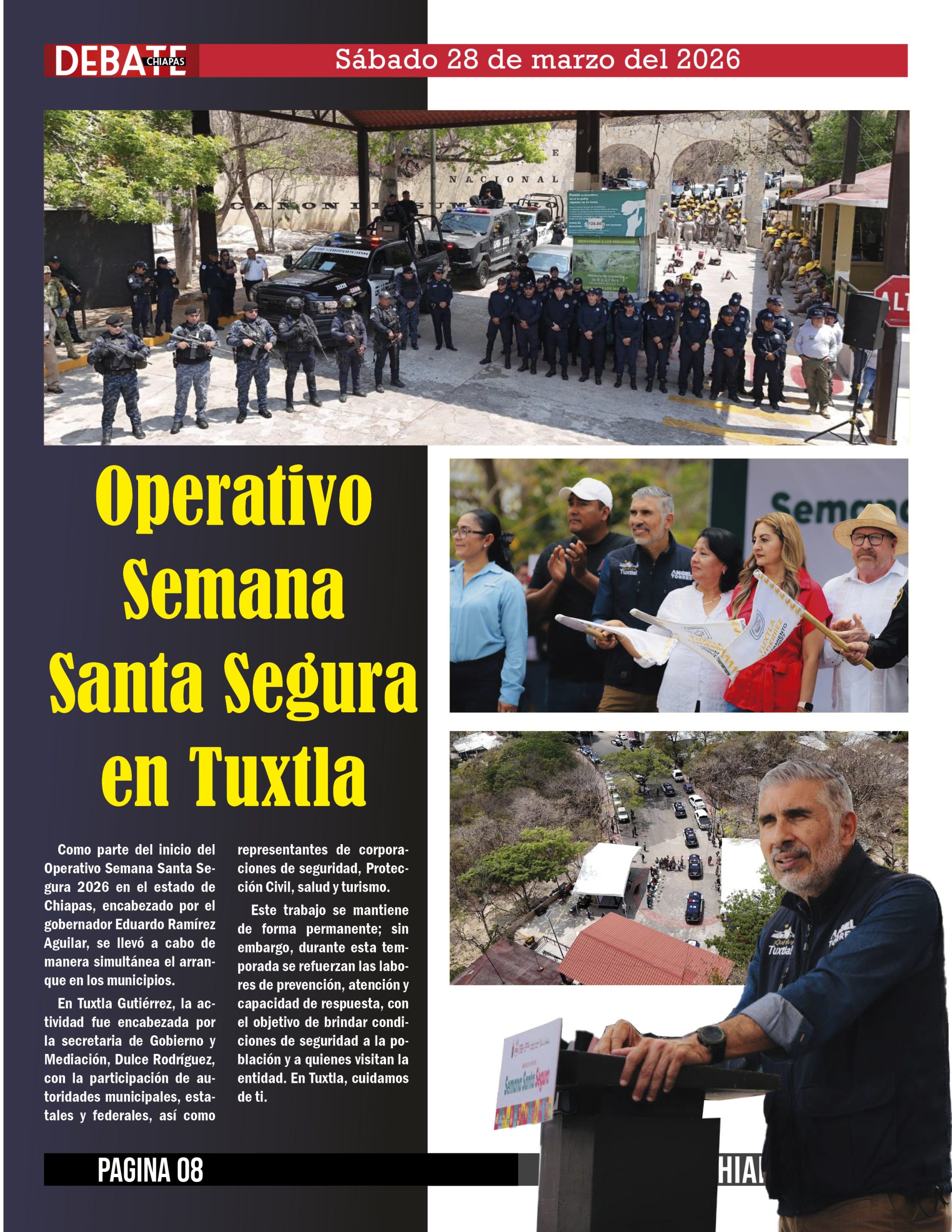 Como parte del inicio del Operativo Semana Santa Segura 2026 en el estado de Chiapas, encabezado por el gobernador Eduardo Ramírez Aguilar, se llevó a cabo de manera simultánea el arranque en los municipios.