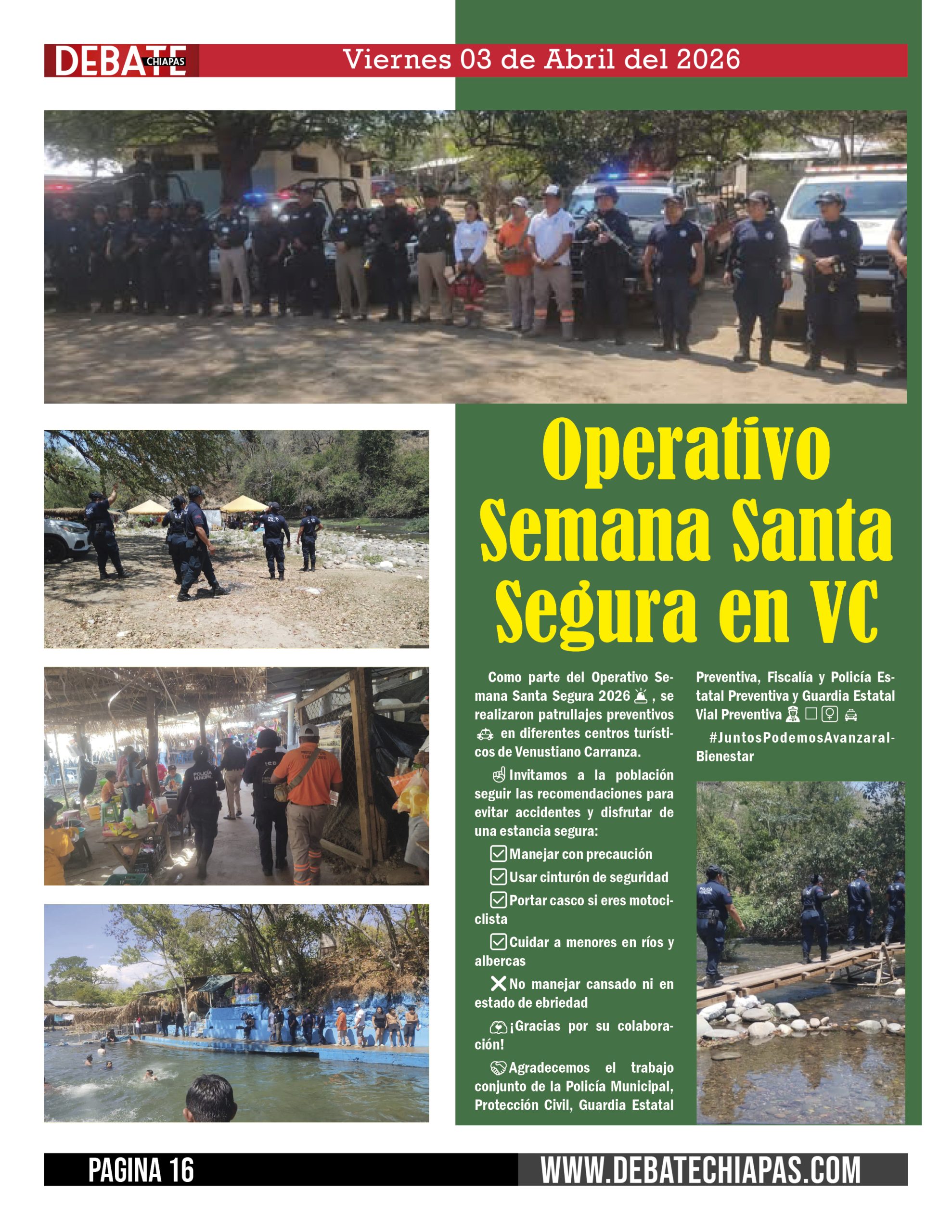 Como parte del Operativo Semana Santa Segura 2026🚨, se realizaron patrullajes preventivos 🚓 en diferentes centros turísticos de Venustiano Carranza.