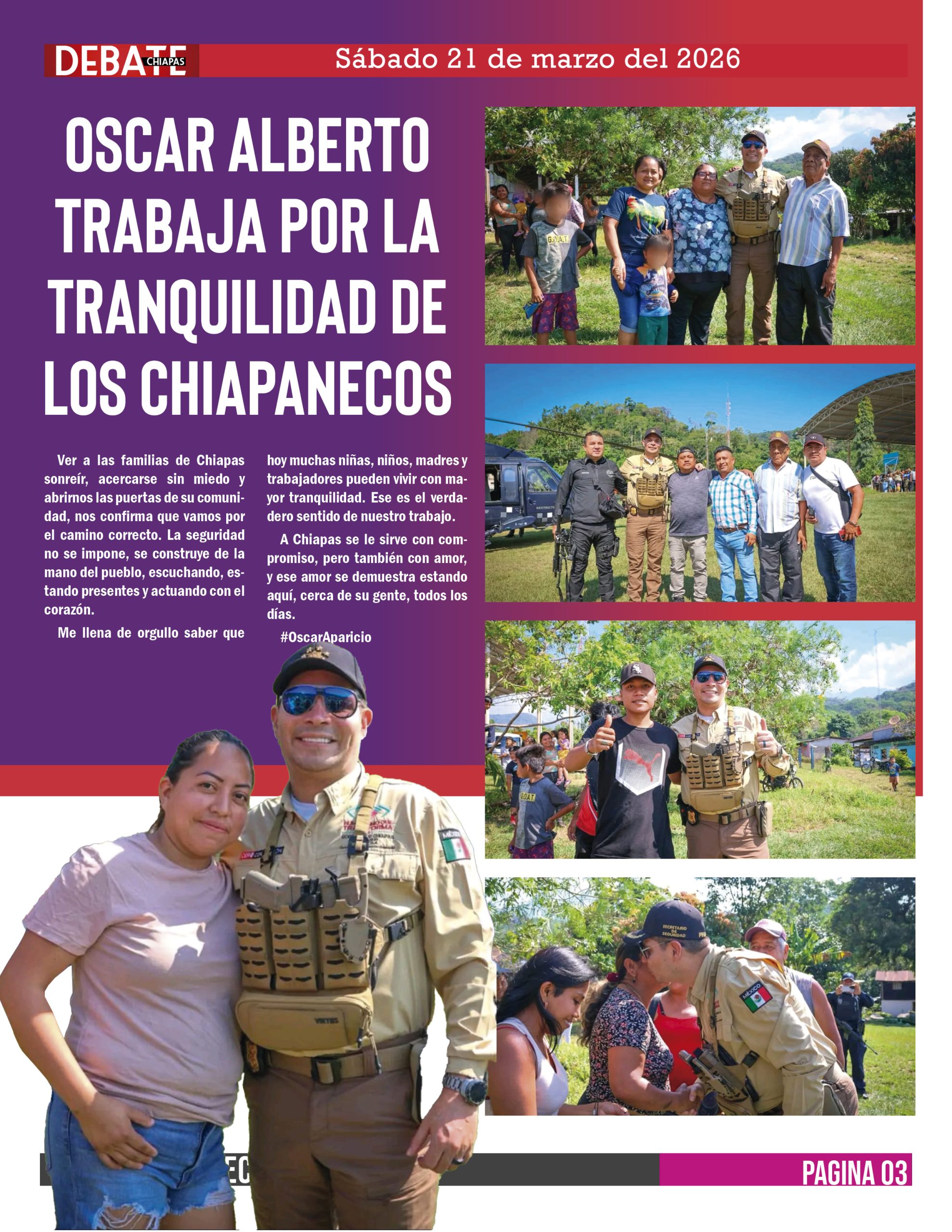 Oscar Alberto trabaja por la tranquilidad de los Chiapanecos