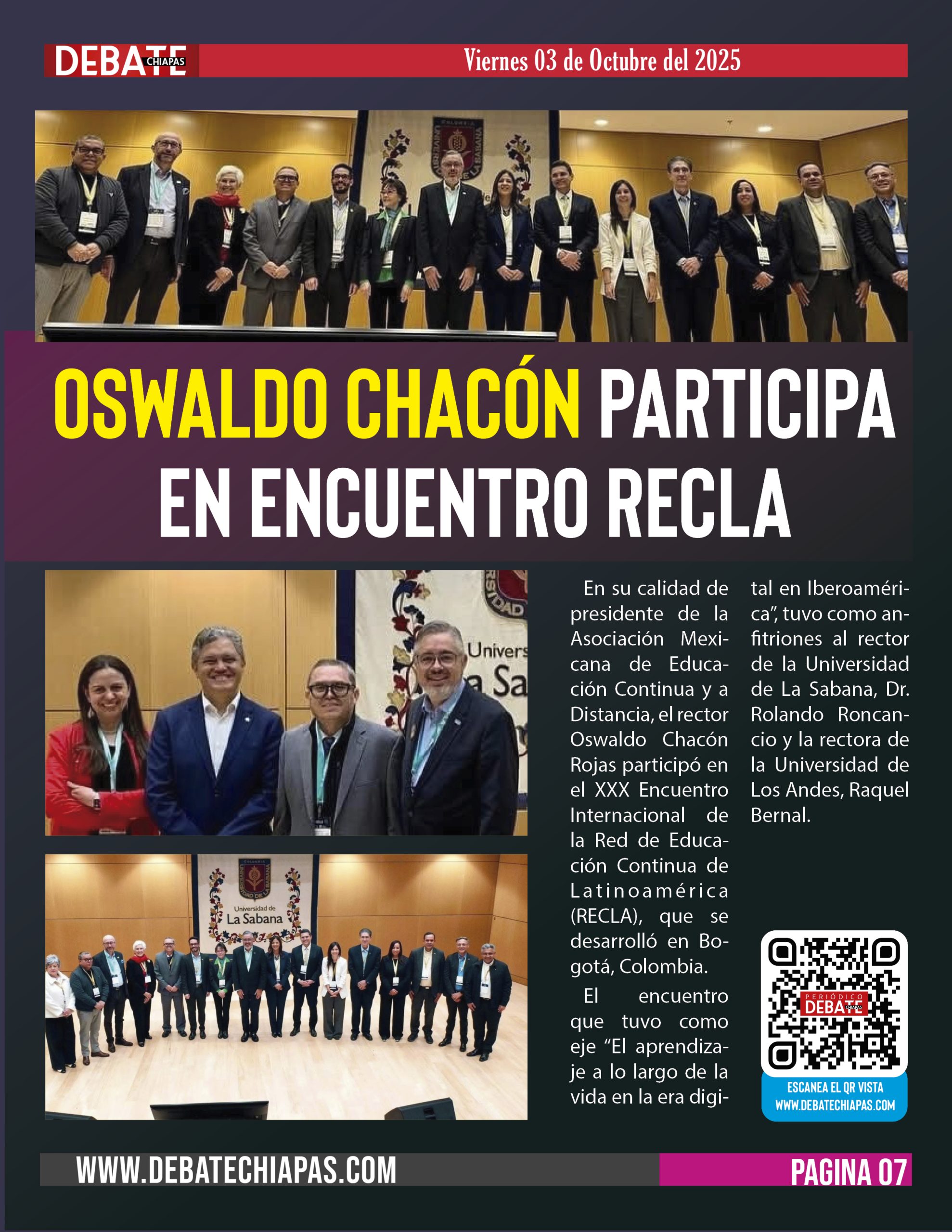 En su calidad de presidente de la Asociación Mexicana de Educación Continua y a Distancia, el rector Oswaldo Chacón Rojas participó en el XXX Encuentro Internacional de la Red de Educación Continua de Latinoamérica (RECLA), que se desarrolló en Bogotá, Colombia.