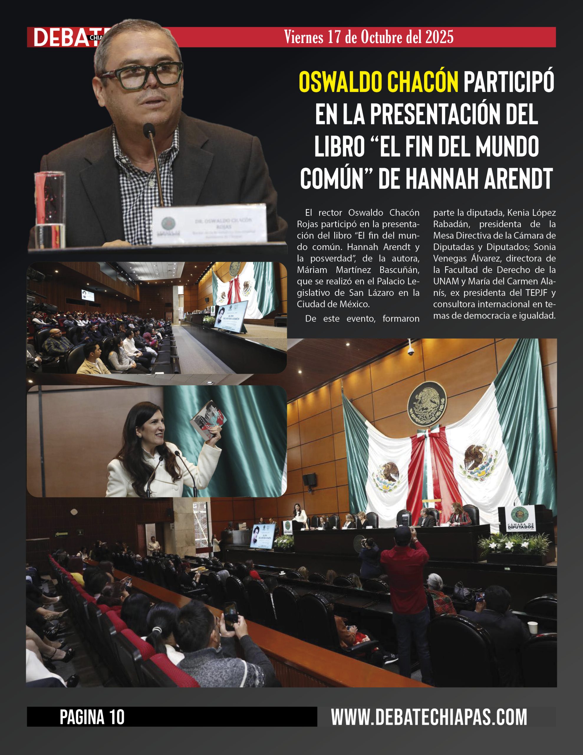 El rector Oswaldo Chacón Rojas participó en la presentación del libro “El fin del mundo común. Hannah Arendt y la posverdad”, de la autora, Máriam Martínez Bascuñán, que se realizó en el Palacio Legislativo de San Lázaro en la Ciudad de México.