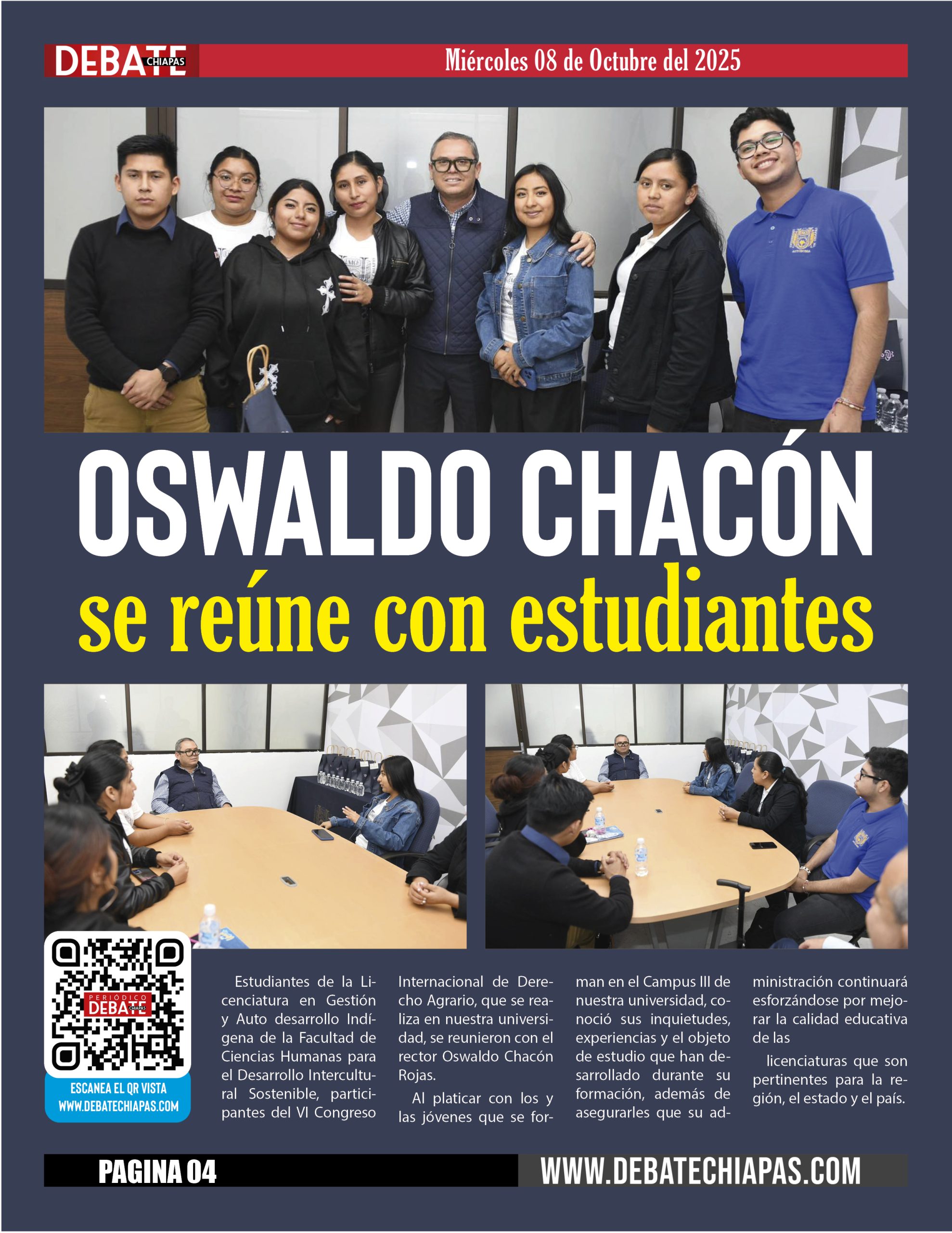 Estudiantes de la Licenciatura en Gestión y Auto desarrollo Indígena de la Facultad de Ciencias Humanas para el Desarrollo Intercultural Sostenible, participantes del VI Congreso Internacional de Derecho Agrario, que se realiza en nuestra universidad, se reunieron con el rector Oswaldo Chacón Rojas.