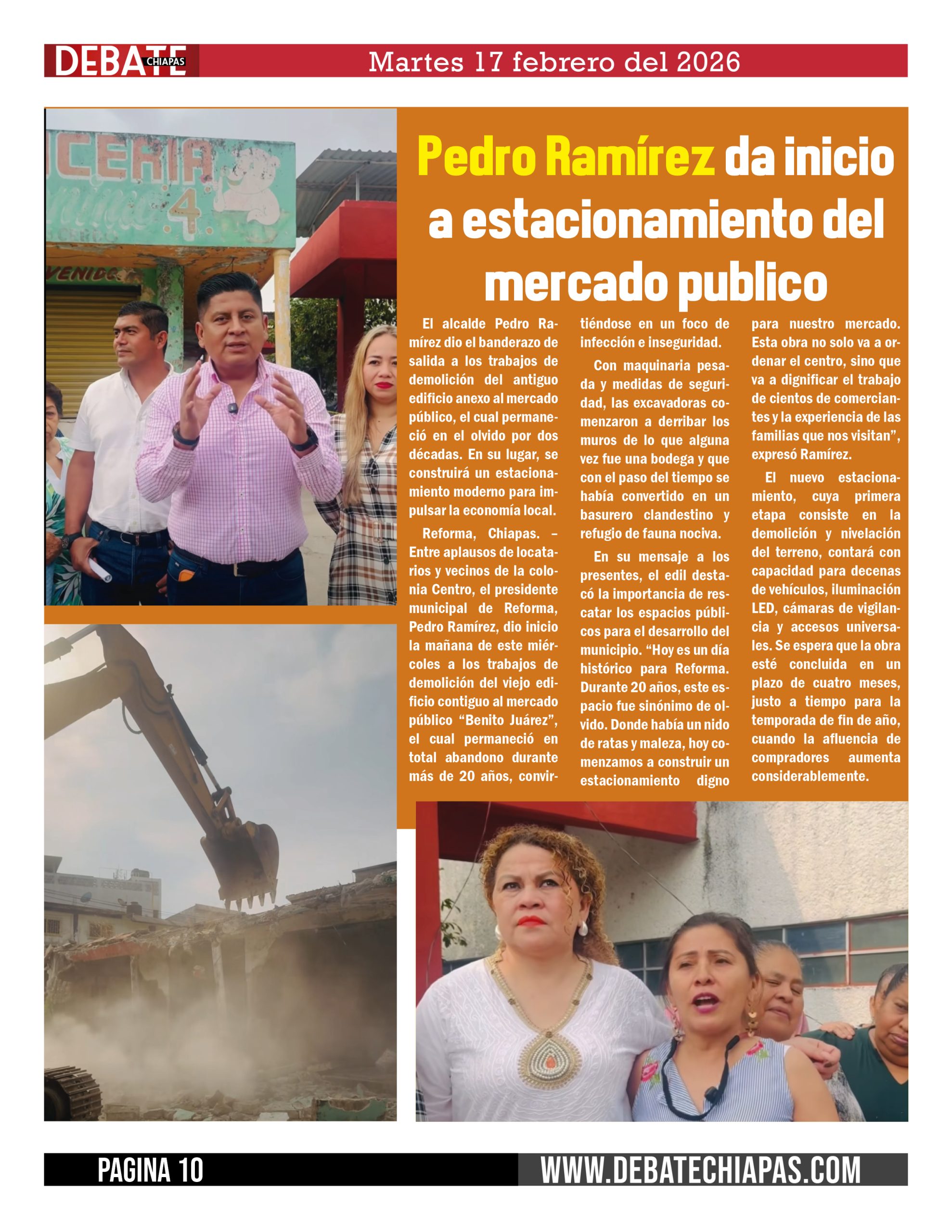Reforma, Chiapas. – Entre aplausos de locatarios y vecinos de la colonia Centro, el presidente municipal de Reforma, Pedro Ramírez, dio inicio la mañana de este miércoles a los trabajos de demolición del viejo edificio contiguo al mercado público “Benito Juárez”, el cual permaneció en total abandono durante más de 20 años, convirtiéndose en un foco de infección e inseguridad.