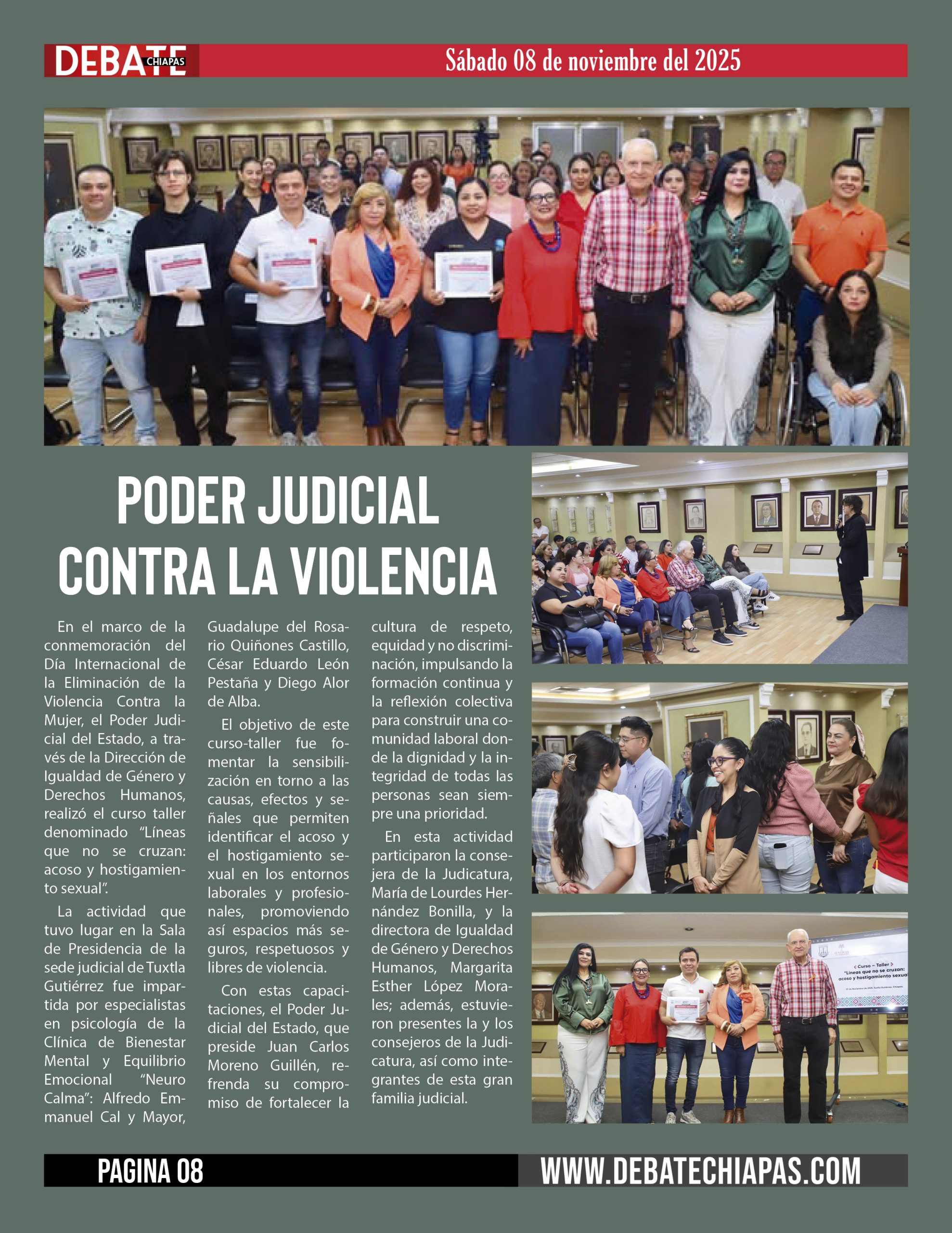 Con estas capacitaciones, el Poder Judicial del Estado, que preside Juan Carlos Moreno Guillén, refrenda su compromiso de fortalecer la cultura de respeto, equidad y no discriminación, impulsando la formación continua y la reflexión colectiva para construir una comunidad laboral donde la dignidad y la integridad de todas las personas sean siempre una prioridad.