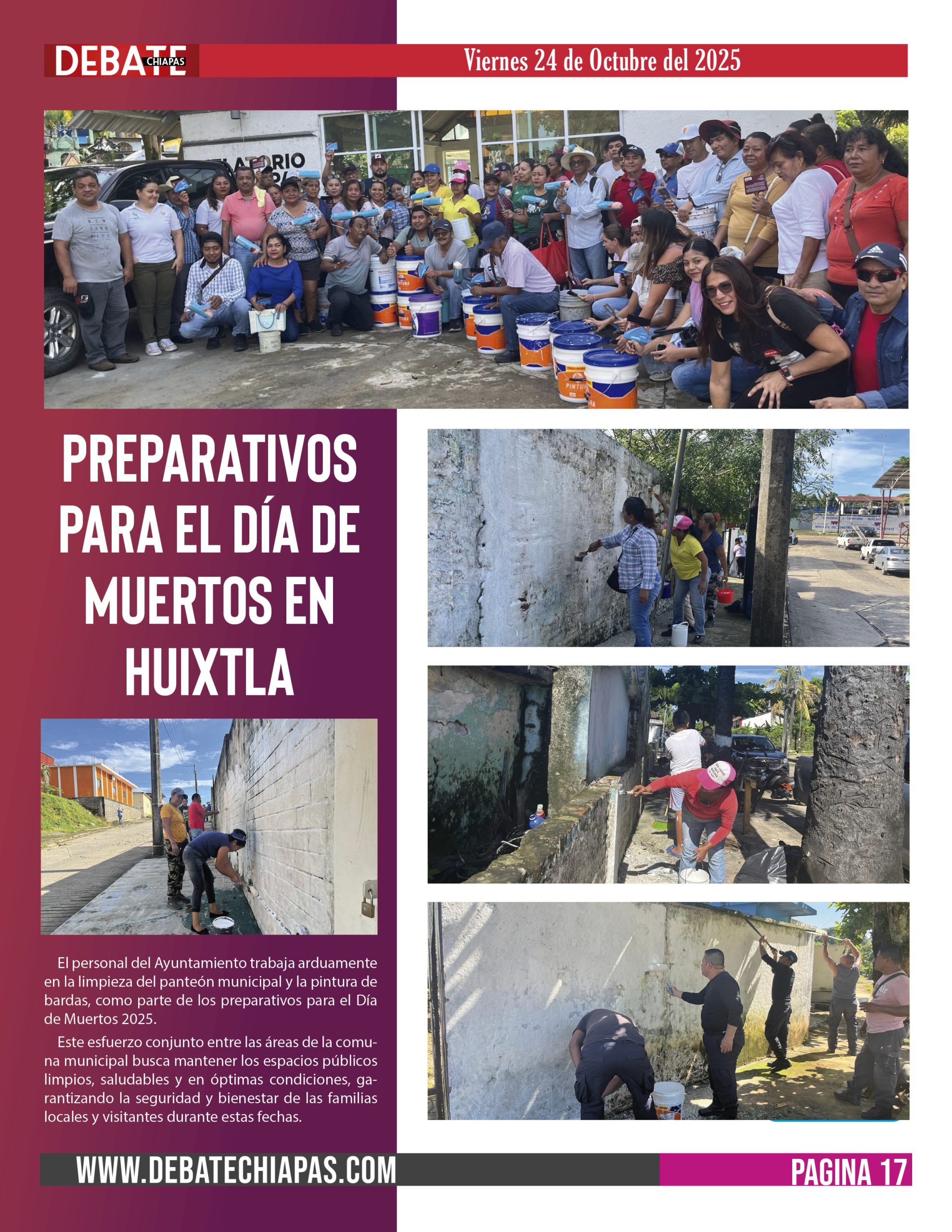 El personal del Ayuntamiento trabaja arduamente en la limpieza del panteón municipal y la pintura de bardas, como parte de los preparativos para el Día de Muertos 2025.