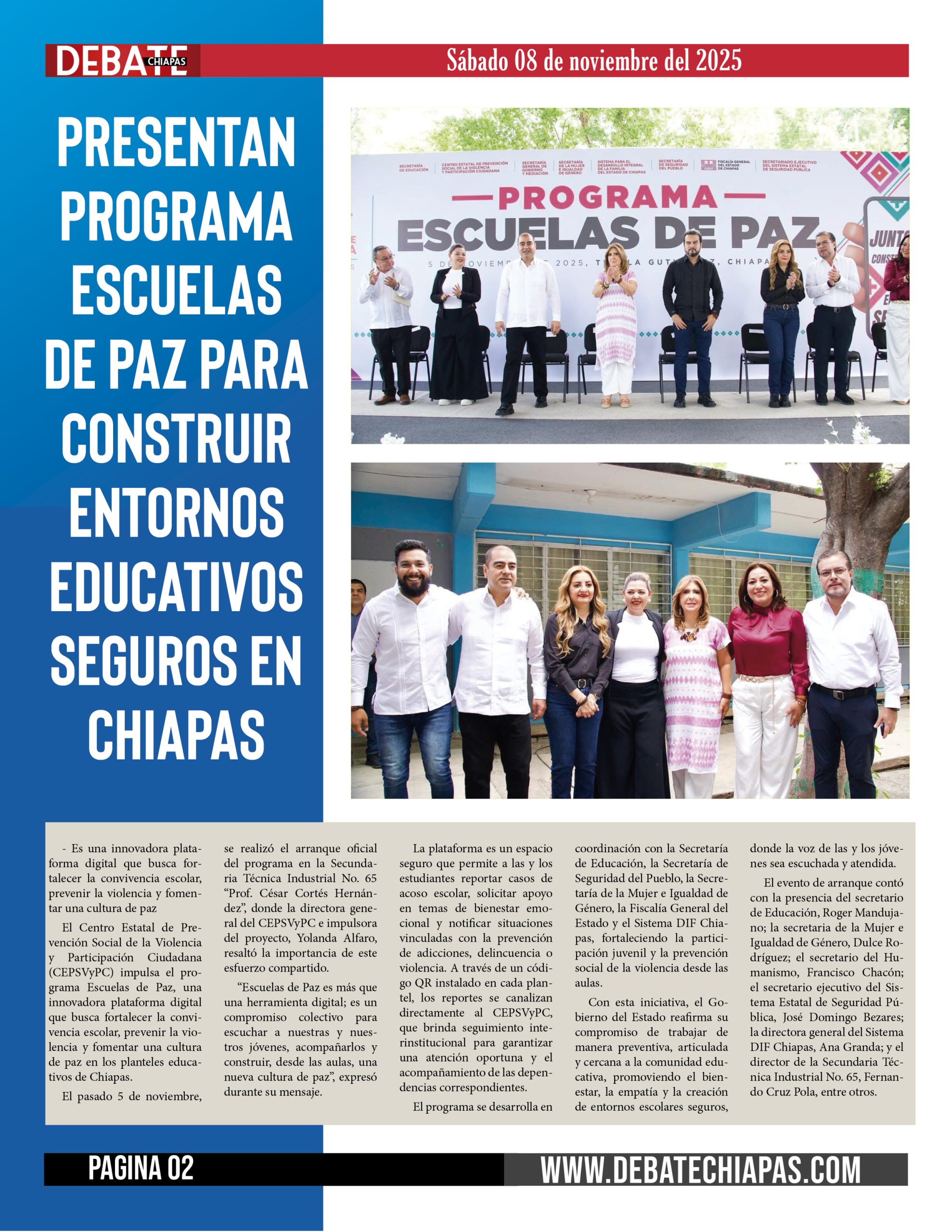 El Centro Estatal de Prevención Social de la Violencia y Participación Ciudadana (CEPSVyPC) impulsa el programa Escuelas de Paz, una innovadora plataforma digital que busca fortalecer la convivencia escolar, prevenir la violencia y fomentar una cultura de paz en los planteles educativos de Chiapas.