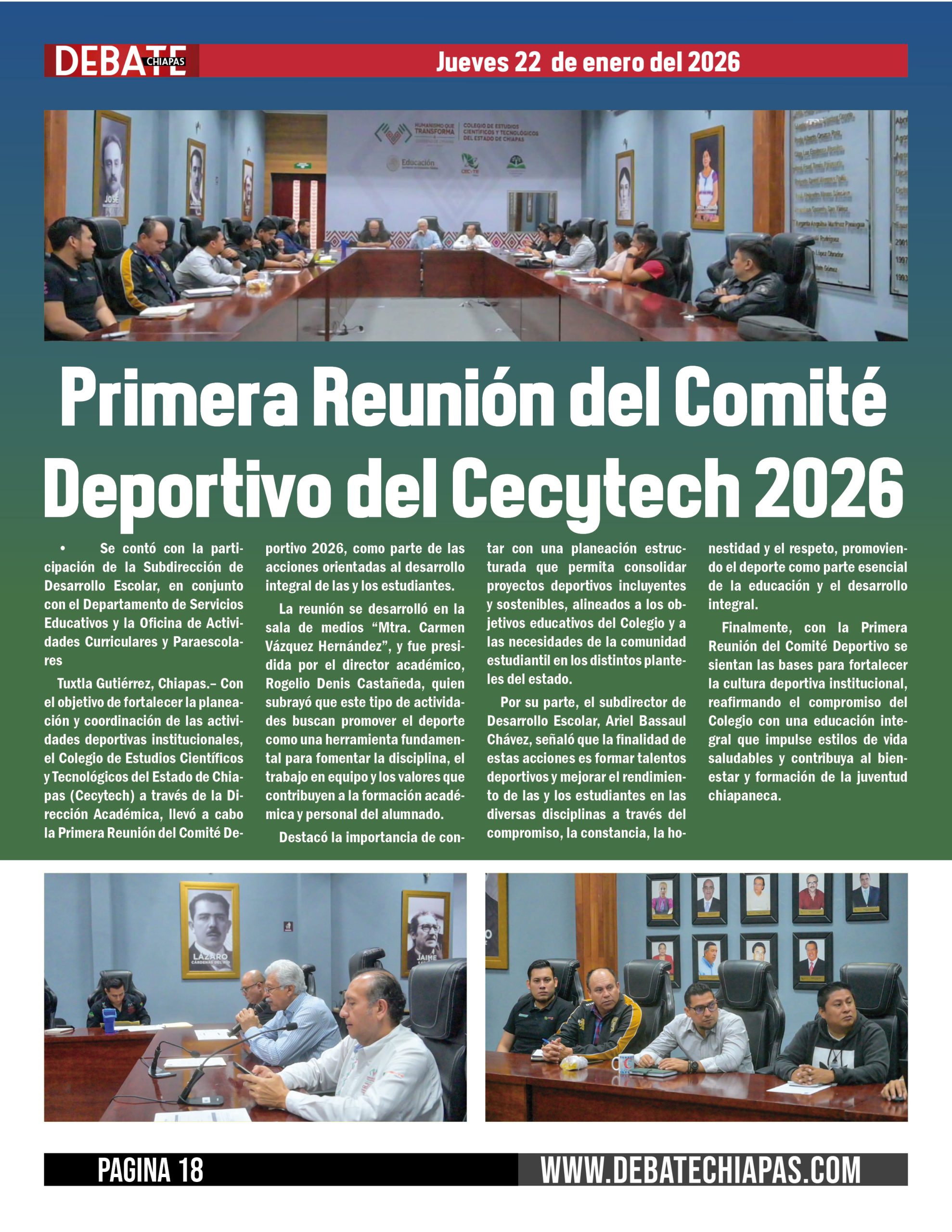 Tuxtla Gutiérrez, Chiapas.– Con el objetivo de fortalecer la planeación y coordinación de las actividades deportivas institucionales, el Colegio de Estudios Científicos y Tecnológicos del Estado de Chiapas (Cecytech) a través de la Dirección Académica, llevó a cabo la Primera Reunión del Comité Deportivo 2026, como parte de las acciones orientadas al desarrollo integral de las y los estudiantes.