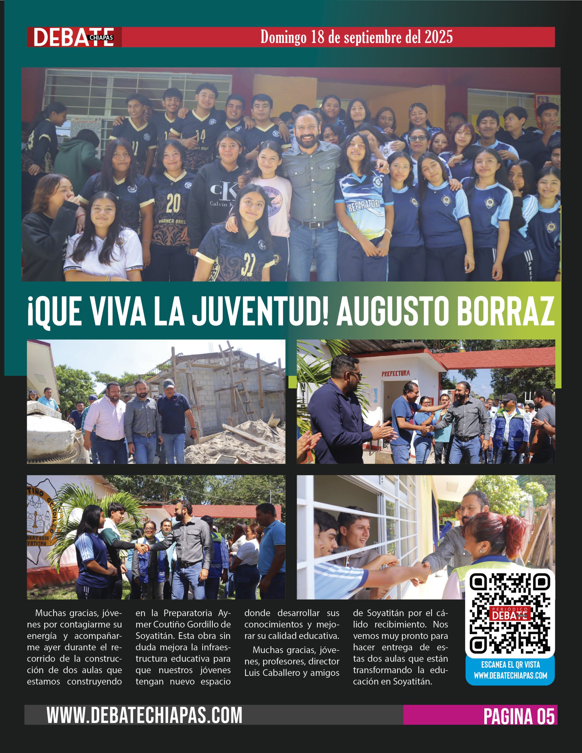 Muchas gracias, jóvenes por contagiarme su energía y acompañarme ayer durante el recorrido de la construcción de dos aulas que estamos construyendo en la Preparatoria Aymer Coutiño Gordillo de Soyatitán. Esta obra sin duda mejora la infraestructura educativa para que nuestros jóvenes tengan nuevo espacio donde desarrollar sus conocimientos y mejorar su calidad educativa.