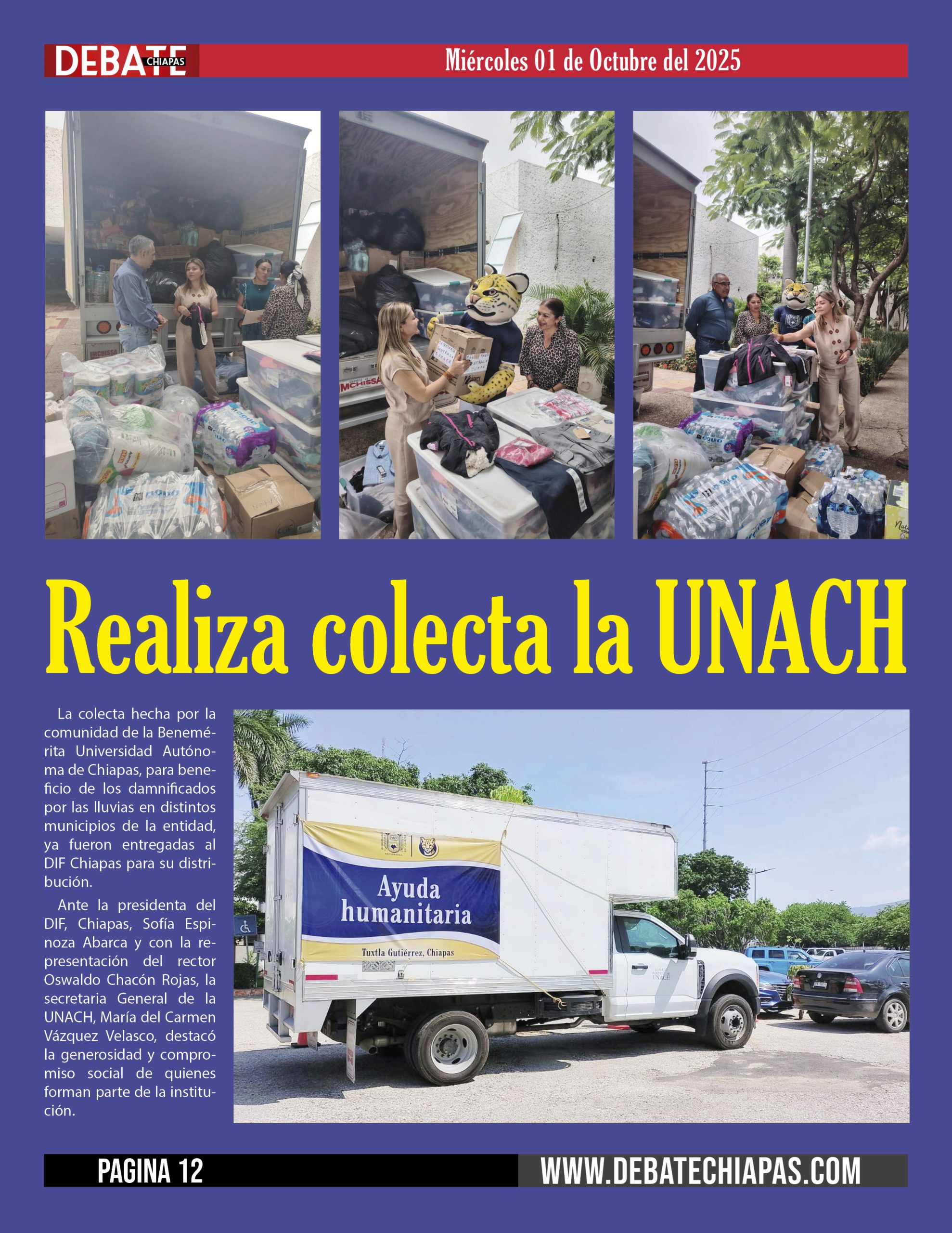 La colecta hecha por la comunidad de la Benemérita Universidad Autónoma de Chiapas, para beneficio de los damnificados por las lluvias en distintos municipios de la entidad, ya fueron entregadas al DIF Chiapas para su distribución.