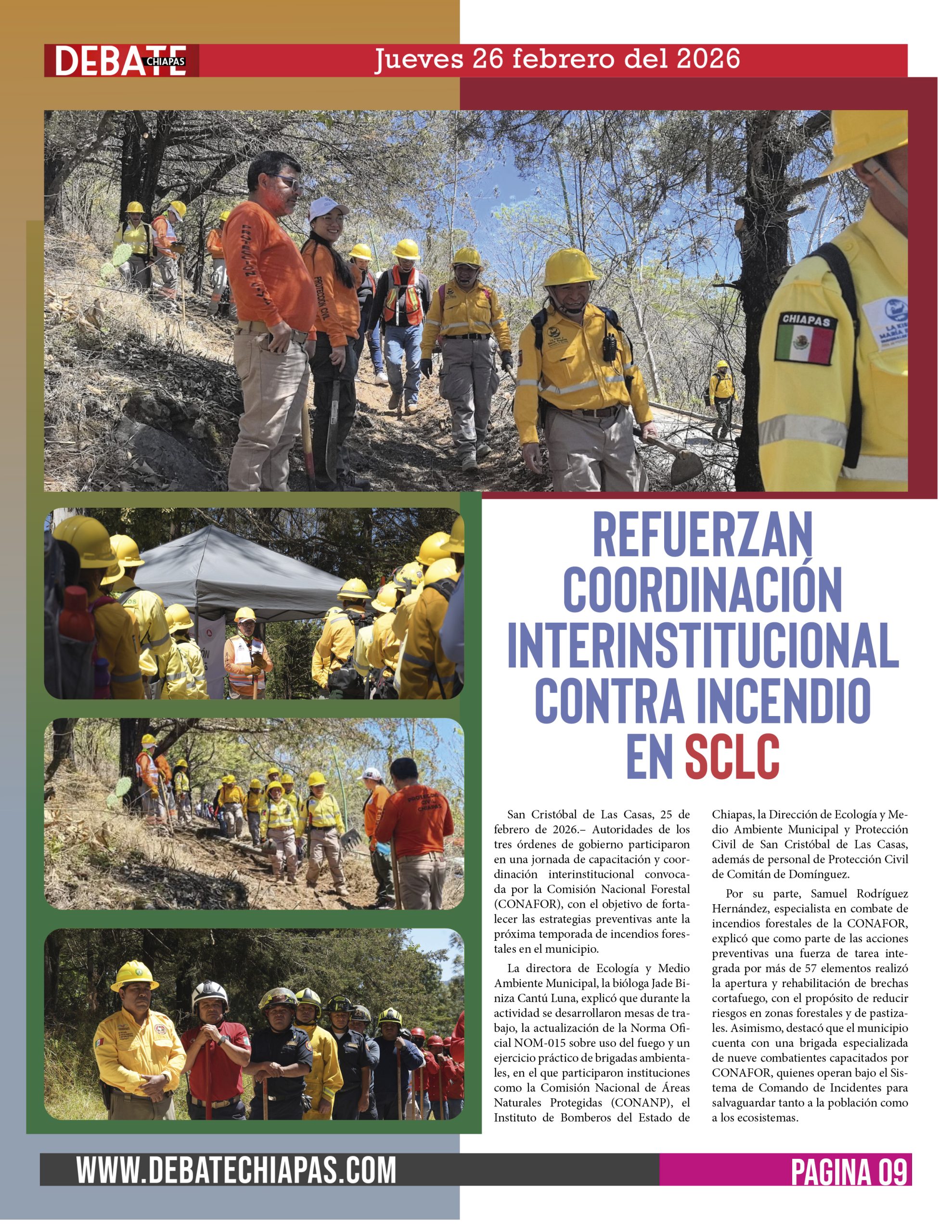 San Cristóbal de Las Casas, 25 de febrero de 2026.– Autoridades de los tres órdenes de gobierno participaron en una jornada de capacitación y coordinación interinstitucional convocada por la Comisión Nacional Forestal (CONAFOR), con el objetivo de fortalecer las estrategias preventivas ante la próxima temporada de incendios forestales en el municipio.