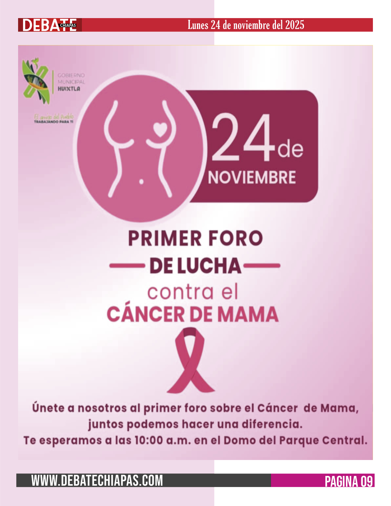 El Ayuntamiento Municipal que dirige el C. Regulo Palomeque Sánchez, a través de la Dirección de Salud Municipal en coordinación con la comisión de Salubridad y Asistencia Social que representa el Dr. Francisco Javier Ávila Solís, convoca al Primer Foro de Lucha Contra el Cáncer de Mama, mismo que se realizará mañana Lunes 24 de Noviembre a las 10 de la mañana en el Domo del Parque Central Francisco I Madero.