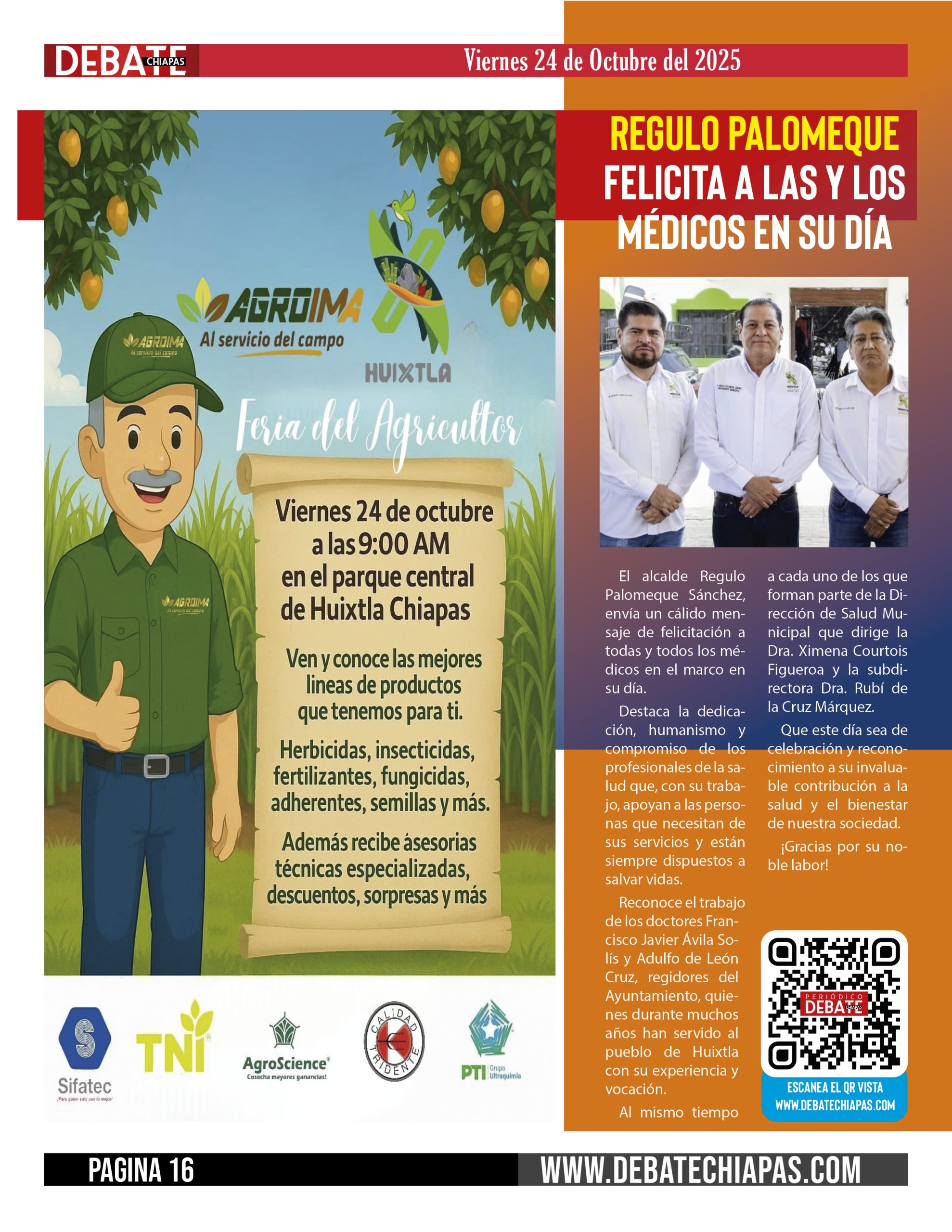 Reconoce el trabajo de los doctores Francisco Javier Ávila Solís y Adulfo de León Cruz, regidores del Ayuntamiento, quienes durante muchos años han servido al pueblo de Huixtla con su experiencia y vocación.