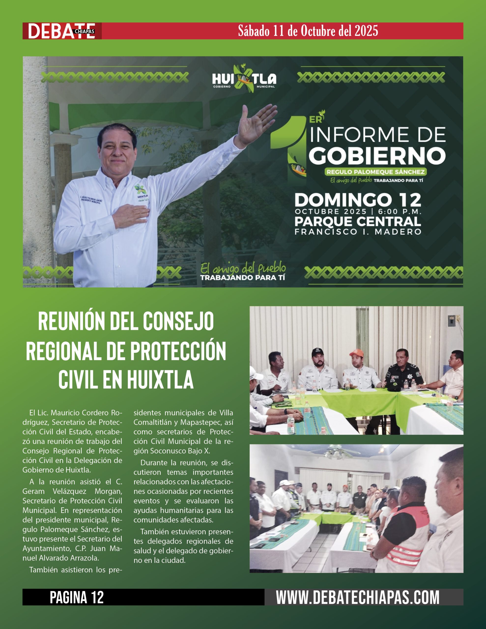 El Lic. Mauricio Cordero Rodríguez, Secretario de Protección Civil del Estado, encabezó una reunión de trabajo del Consejo Regional de Protección Civil en la Delegación de Gobierno de Huixtla.