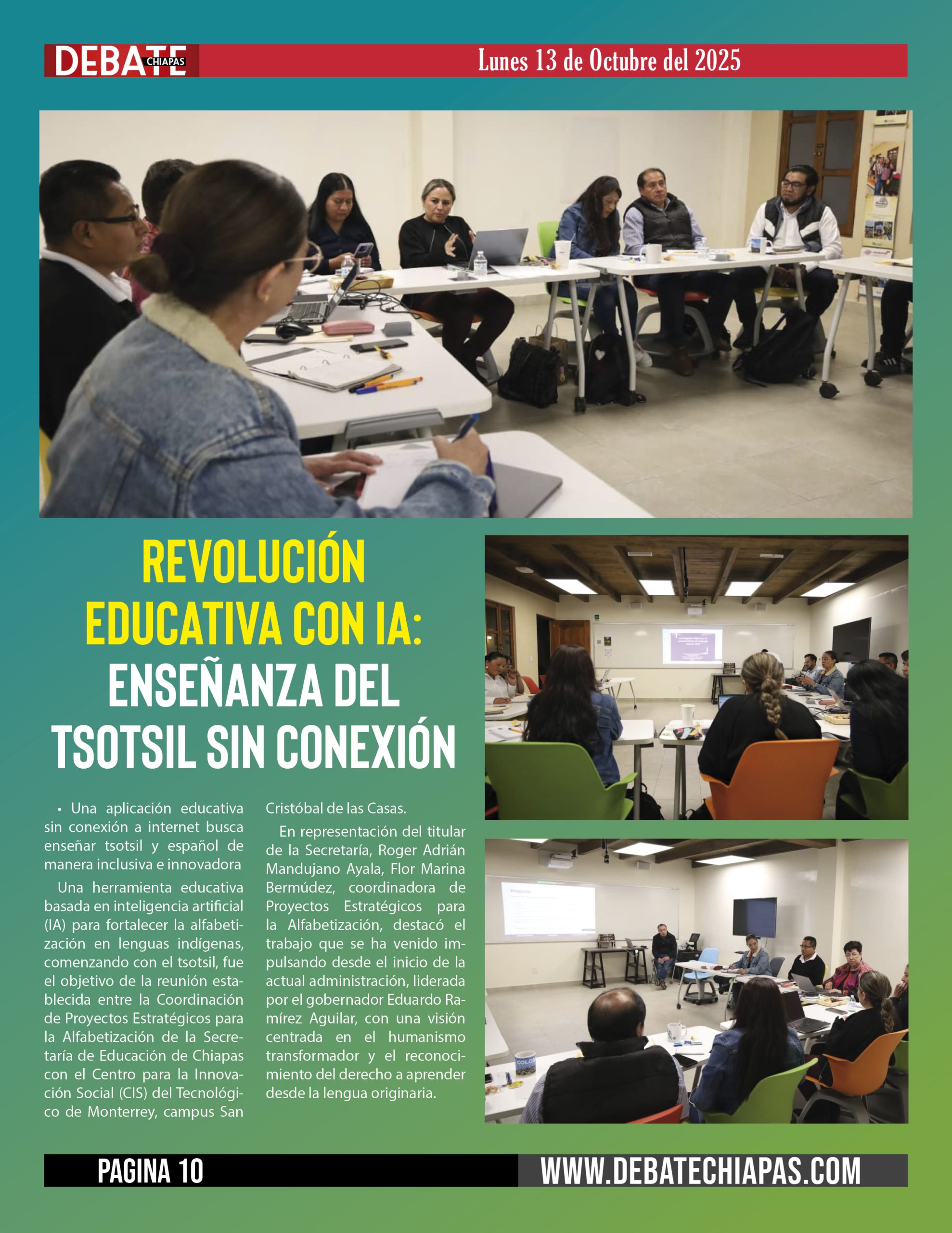 Una herramienta educativa basada en inteligencia artificial (IA) para fortalecer la alfabetización en lenguas indígenas, comenzando con el tsotsil, fue el objetivo de la reunión establecida entre la Coordinación de Proyectos Estratégicos para la Alfabetización de la Secretaría de Educación de Chiapas con el Centro para la Innovación Social (CIS) del Tecnológico de Monterrey, campus San Cristóbal de las Casas.