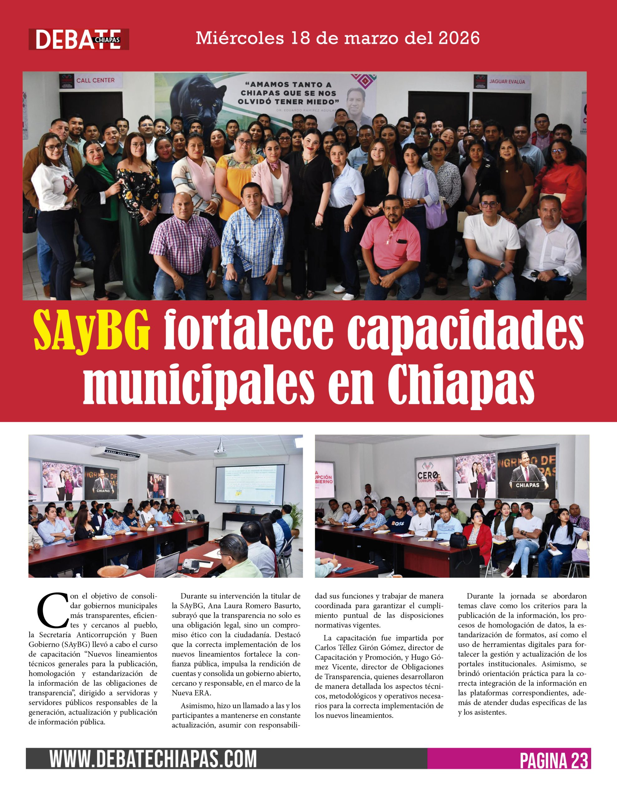 Con este tipo de acciones, la SAyBG refrenda su compromiso con el principal eje de la Nueva ERA: impulsar una cultura de transparencia, legalidad y rendición de cuentas, contribuyendo al fortalecimiento institucional y a la construcción de un gobierno más eficiente, íntegro y al servicio del pueblo de Chiapas.