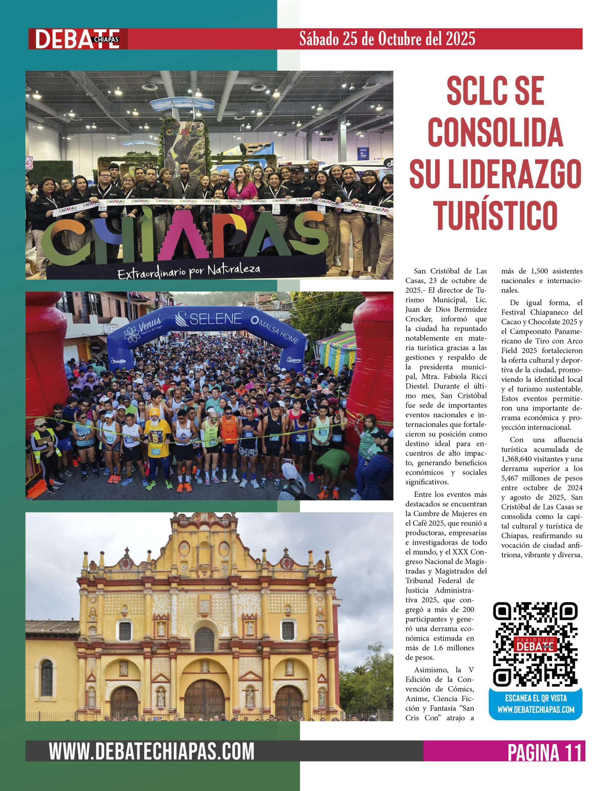 Con una afluencia turística acumulada de 1,368,640 visitantes y una derrama superior a los 5,467 millones de pesos entre octubre de 2024 y agosto de 2025, San Cristóbal de Las Casas se consolida como la capital cultural y turística de Chiapas, reafirmando su vocación de ciudad anfitriona, vibrante y diversa.