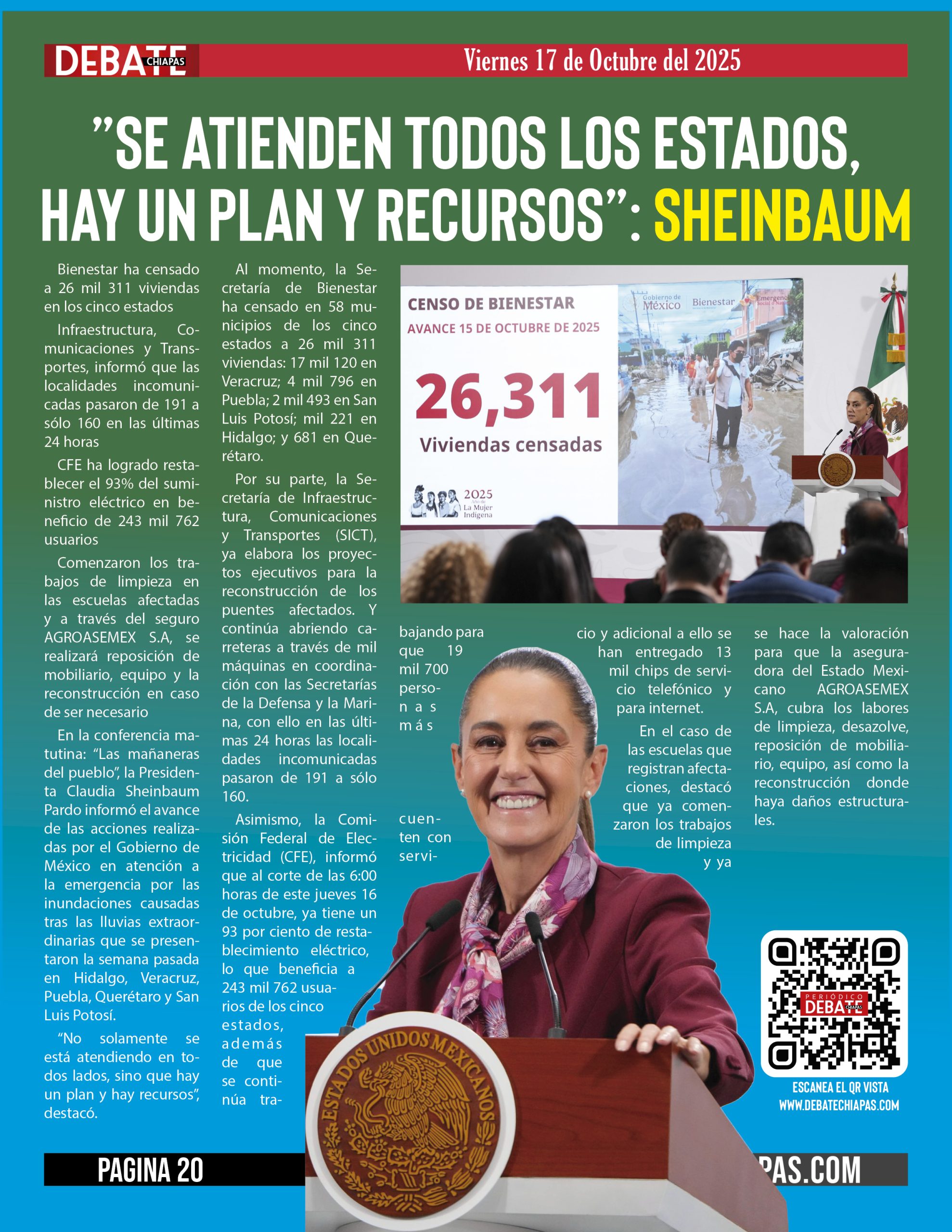 ”Se atienden todos los estados, hay un plan y recursos”: Sheinbaum
