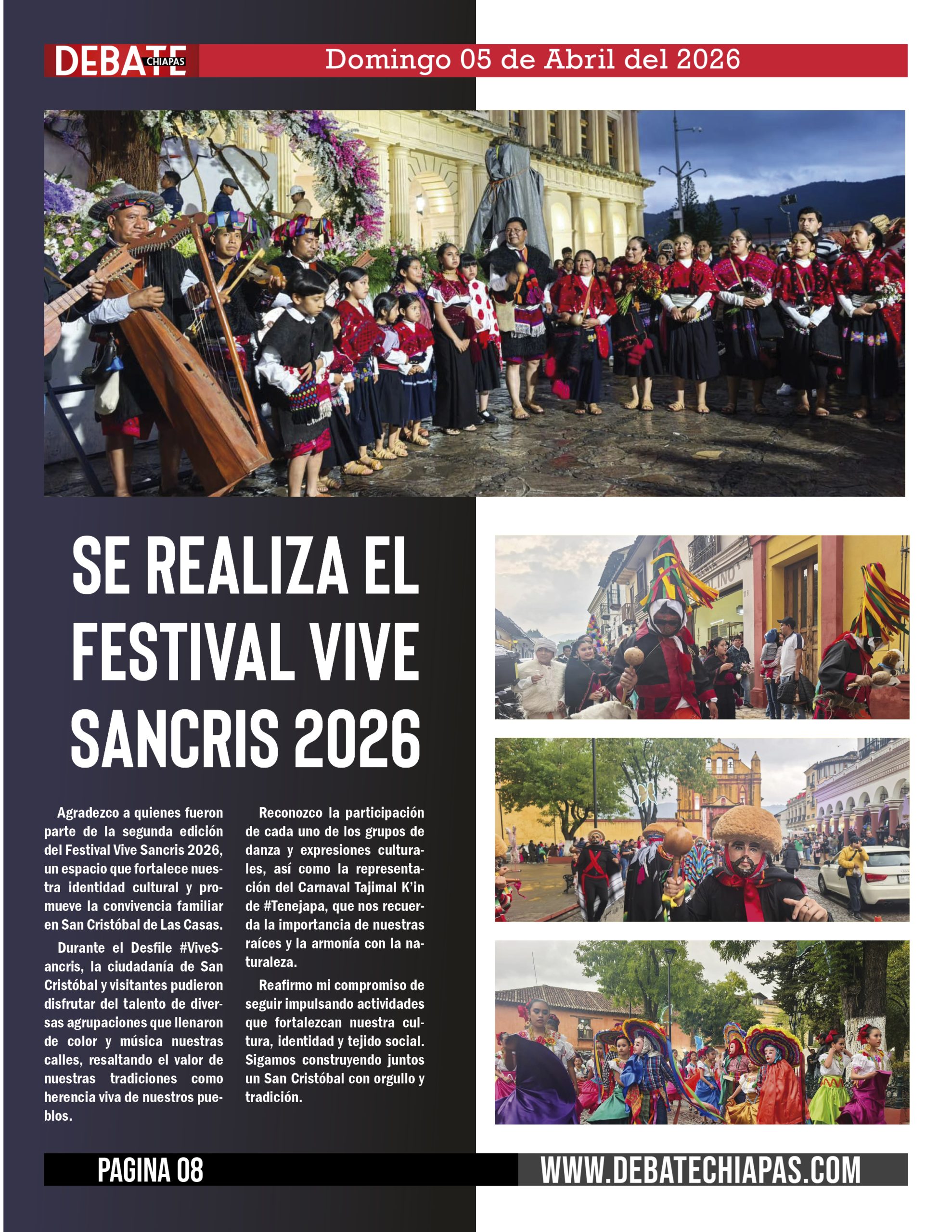 Agradezco a quienes fueron parte de la segunda edición del Festival Vive Sancris 2026, un espacio que fortalece nuestra identidad cultural y promueve la convivencia familiar en San Cristóbal de Las Casas.