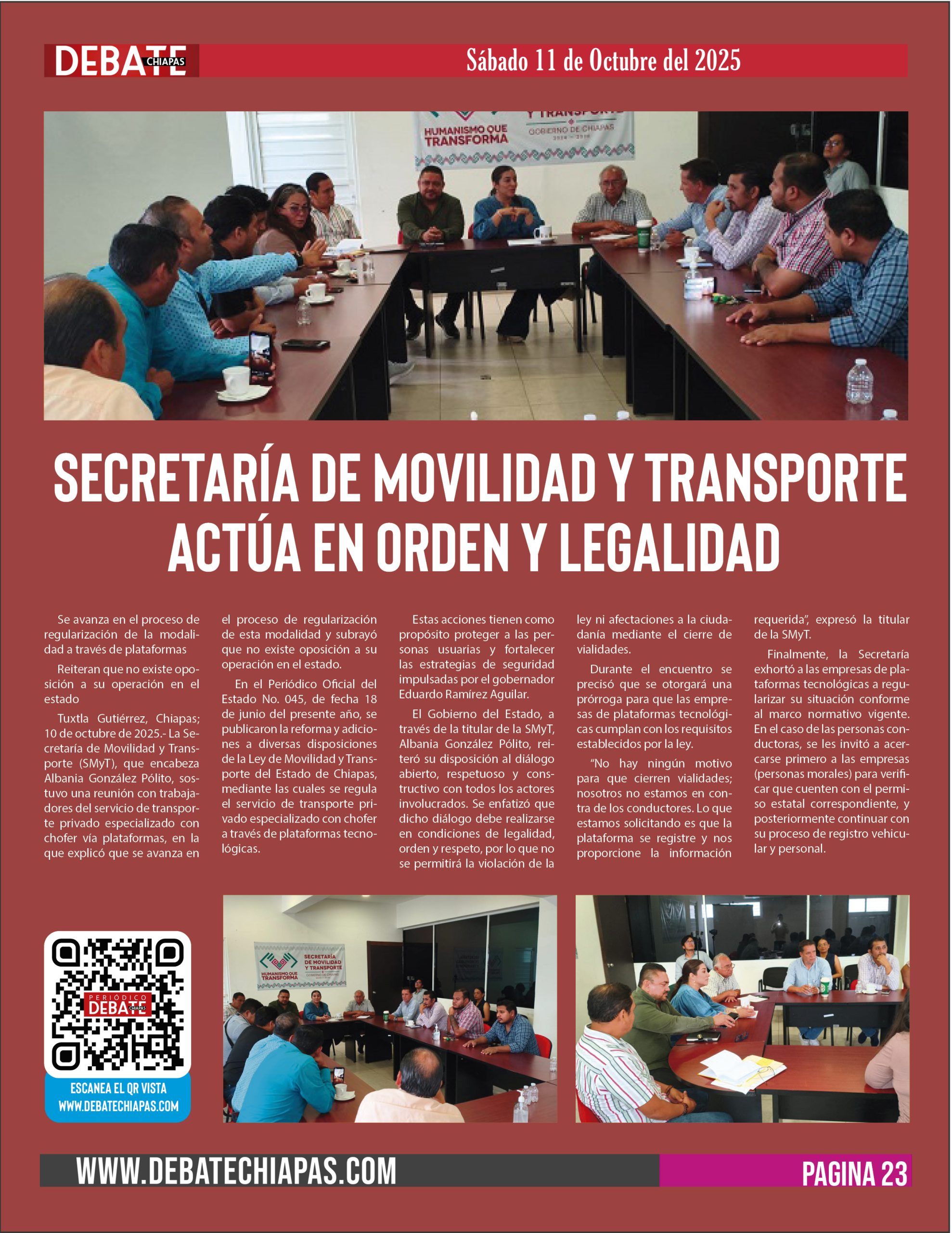 El Gobierno del Estado, a través de la titular de la SMyT, Albania González Pólito, reiteró su disposición al diálogo abierto, respetuoso y constructivo con todos los actores involucrados. Se enfatizó que dicho diálogo debe realizarse en condiciones de legalidad, orden y respeto, por lo que no se permitirá la violación de la ley ni afectaciones a la ciudadanía mediante el cierre de vialidades.